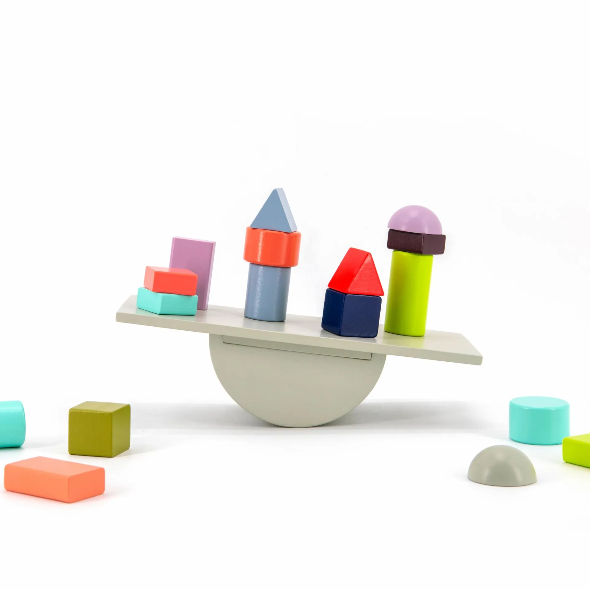 Holzwippe, 24 Bausteine, Baumwollbeutel, Spielanleitung
