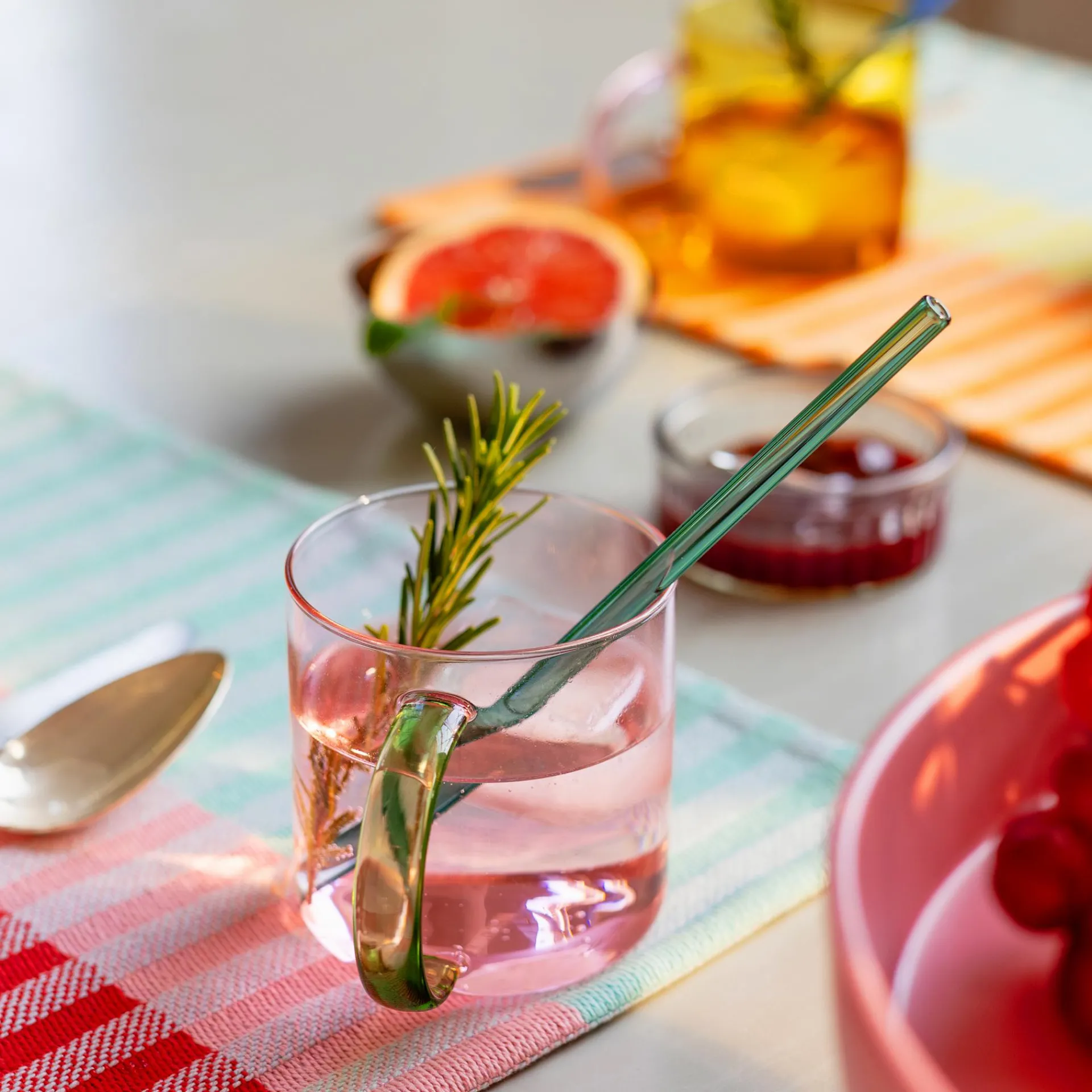 Becher aus gefärbtem Borosilikatglas, temperaturbeständig zwischen -10 °C und 110 °C, spülmaschinengeeignet