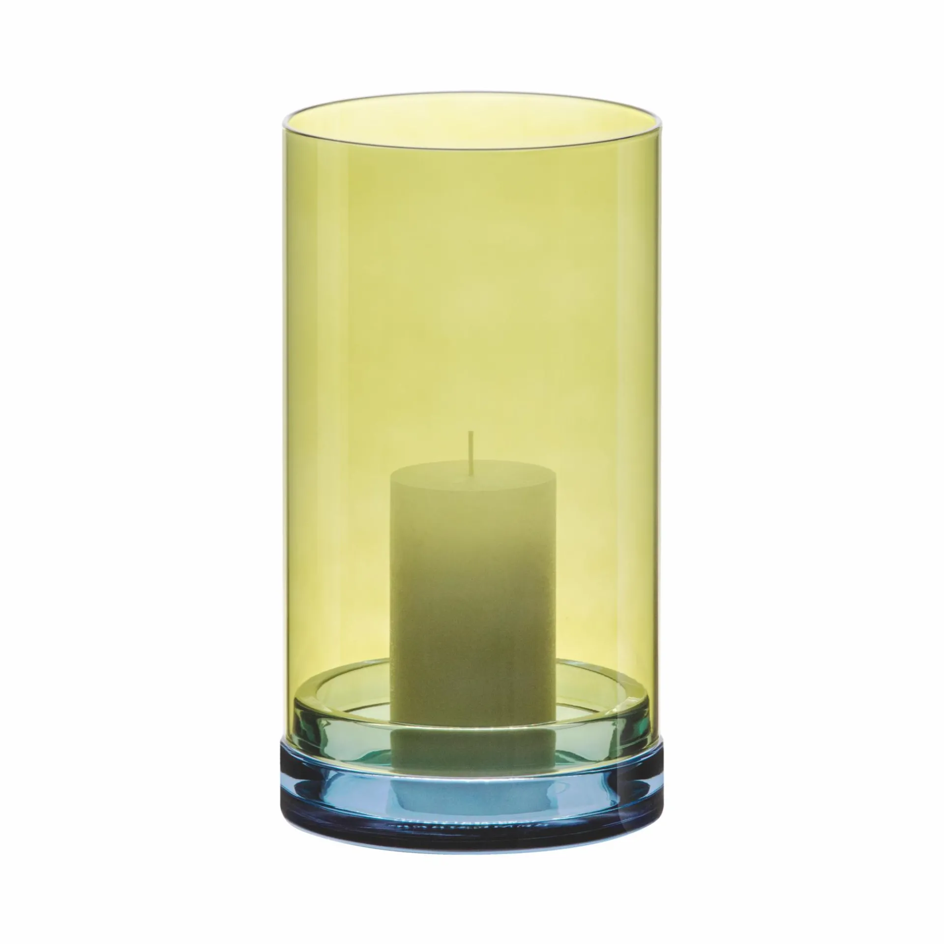 Das große Windlicht Lucius ist einfach ein Hingucker. Das Design ist unterteilt in einen geraden Zylinder, der die Kerze vor Zugluft schützt, und einen farblich abgesetzten Sockel. Das in Handarbeit gefertigte Windlicht besticht so mit Color-Blocking im XL-Format und sorgt mit oder ohne Blockkerze für einen schönen Farbakzent im Haus oder auf der Terrasse.
