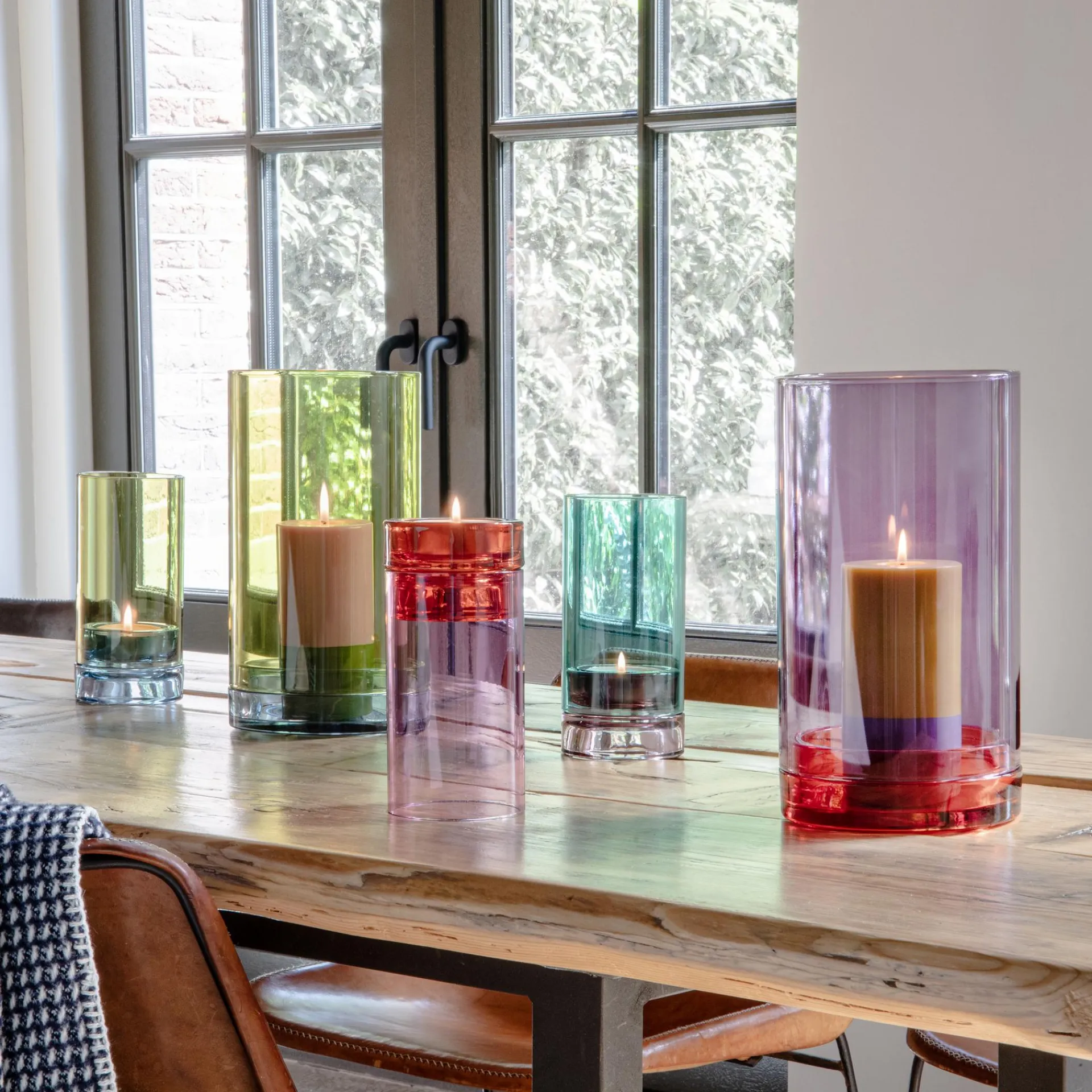 Das große Windlicht Lucius ist einfach ein Hingucker. Das Design ist unterteilt in einen geraden Zylinder, der die Kerze vor Zugluft schützt, und einen farblich abgesetzten Sockel. Das in Handarbeit gefertigte Windlicht besticht so mit Color-Blocking im XL-Format und sorgt mit oder ohne Blockkerze für einen schönen Farbakzent im Haus oder auf der Terrasse.