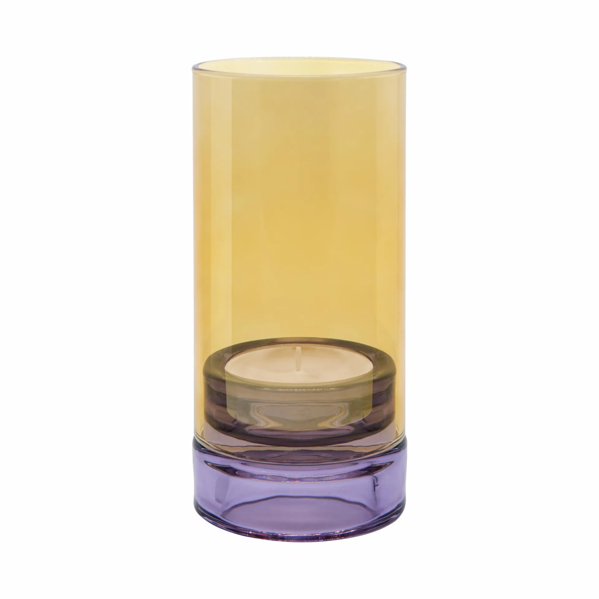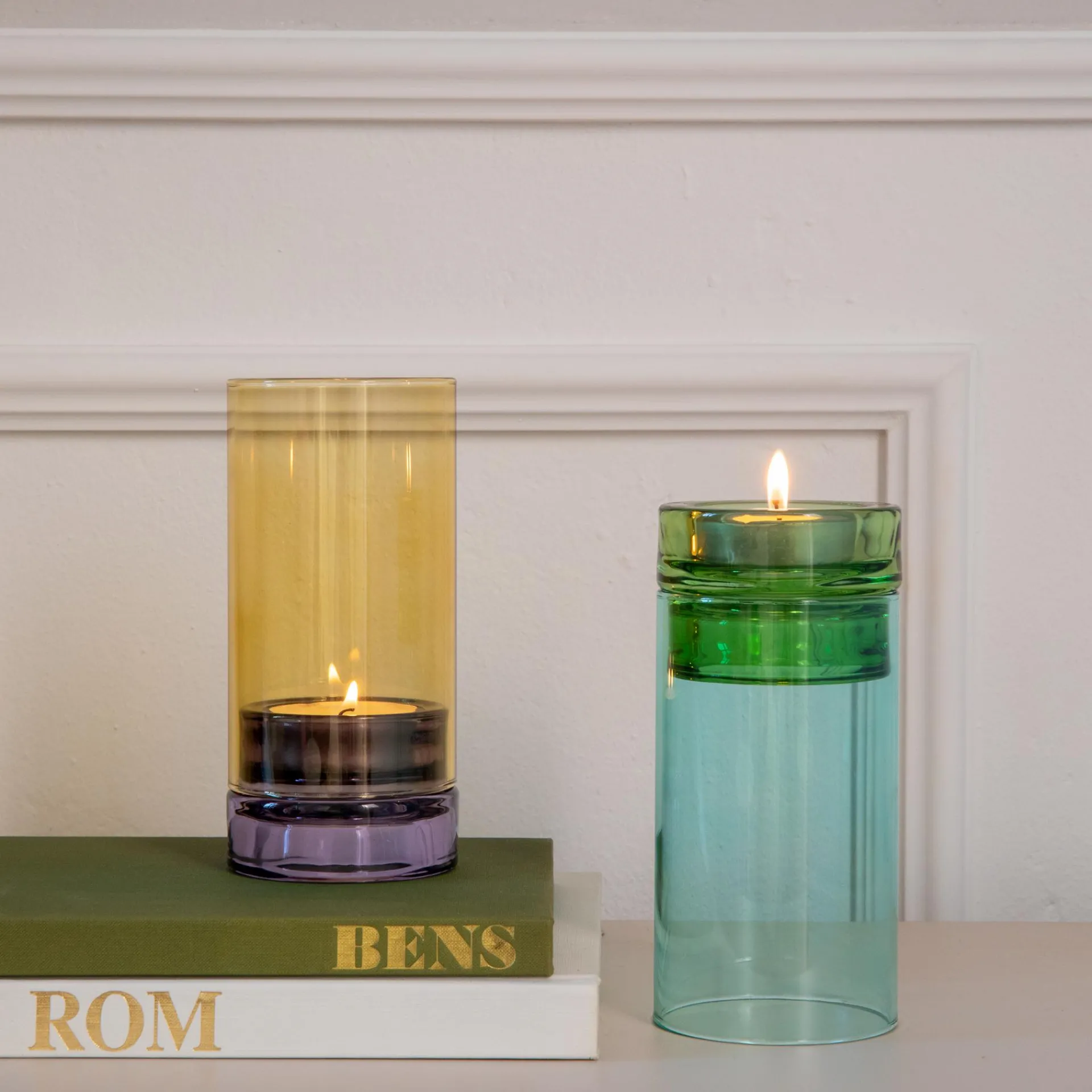 Dieses mundgeblasene Windlicht im Color-Blocking-Design ist eine einfache Möglichkeit, einem Raum einen schönen Farbakzent zu verleihen. Multifunktional: Das Teelicht kann innerhalb des Zylinders oder – dreht man das Windlicht um – oben auf dem Sockel platziert werden.