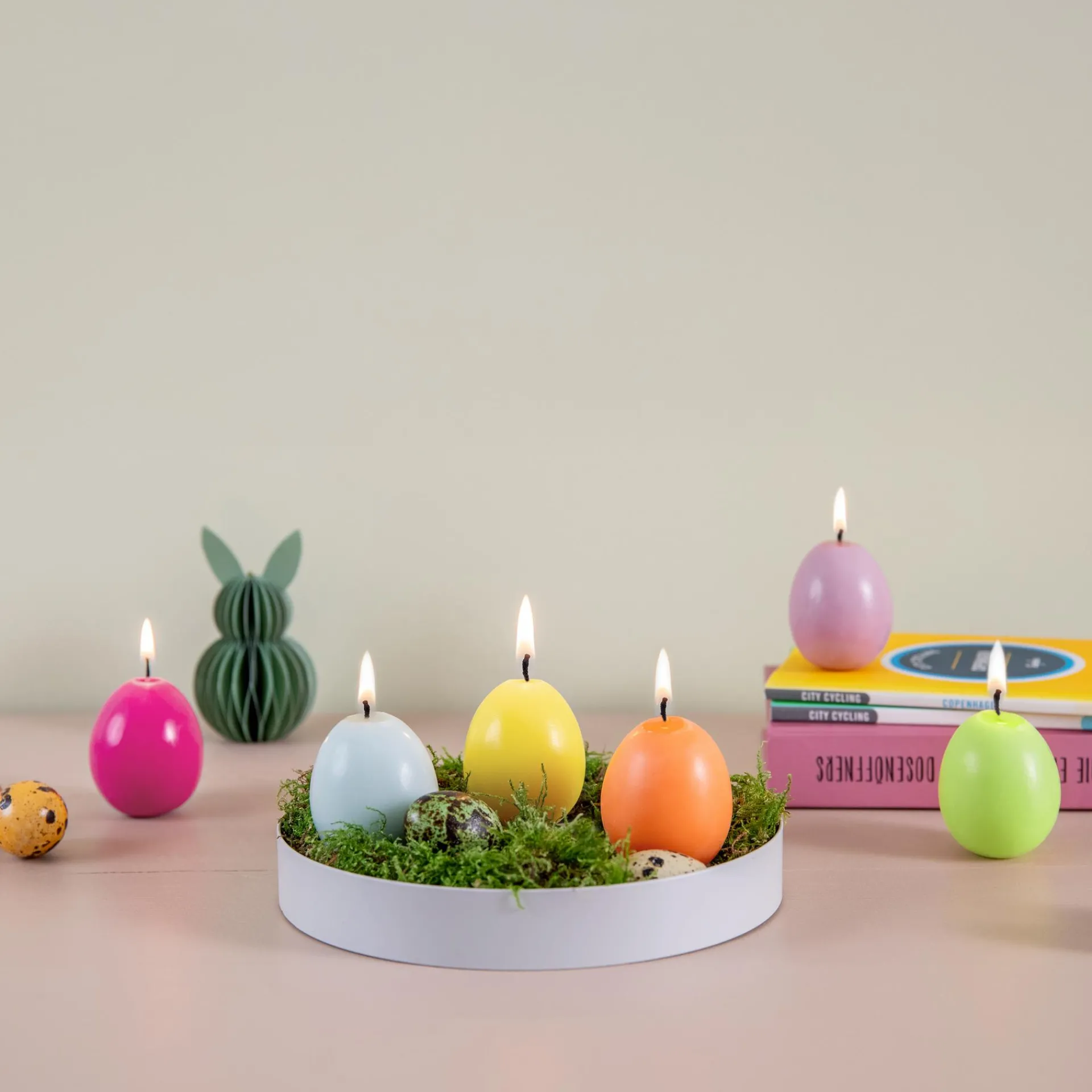 Jede Kerze ist in einer anderen Farbe gestaltet – von leuchtendem Gelb über kräftiges Rosa bis hin zu zartem Blau. Ob als Dekoration auf dem Ostertisch, als kleines Mitbringsel oder als besonderes Highlight im Osternest – diese Kerzen sind vielseitig einsetzbar und verbreiten überall eine fröhliche Stimmung.