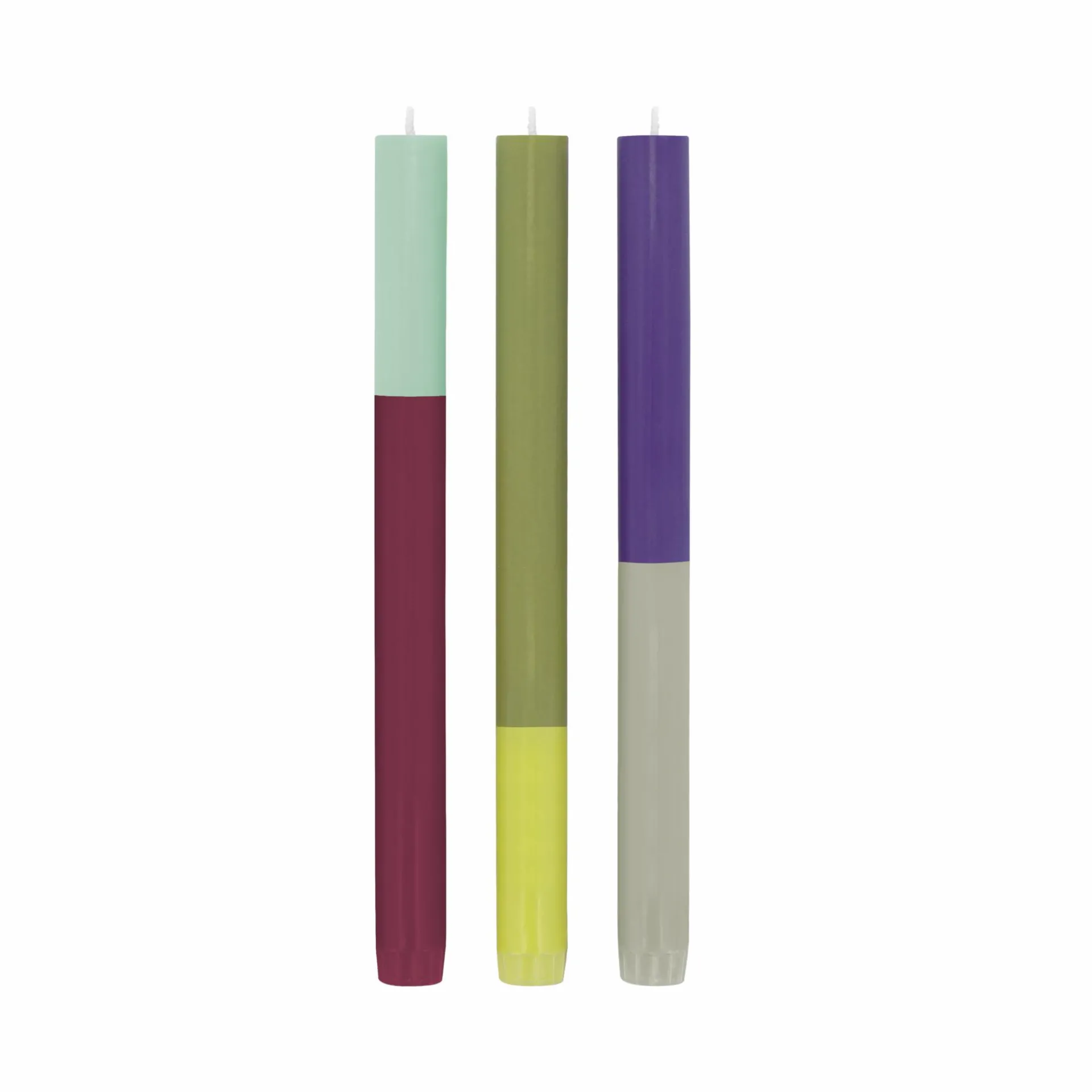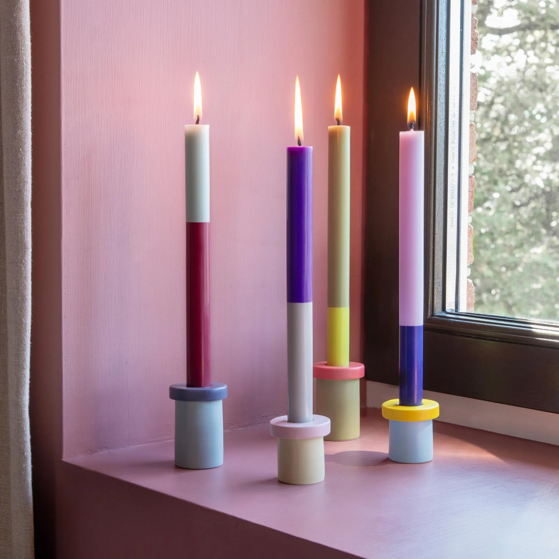 Die farbenfrohen Stabkerzen im Color-Blocking-Design werden in einer Fair-Trade-Produktionsstätte Wachsschicht auf Wachsschicht in Handarbeit gegossen. Gefertigt aus veganem Stearinwachs und gefärbt mit ökologischen Farbstoffen, machen sie nicht nur aufgrund ihrer nachhaltigen Machart Spaß – sie zeichnen sich zudem durch ein hervorragendes Brennverhalten und ihre lange Brenndauer aus. So wird das Lichtermeer perfekt: Die Stabkerzen sind ideal für das Magnetische Kerzentablett Luna, Luna Mini und das Kerzenhalter-Set Pippo.