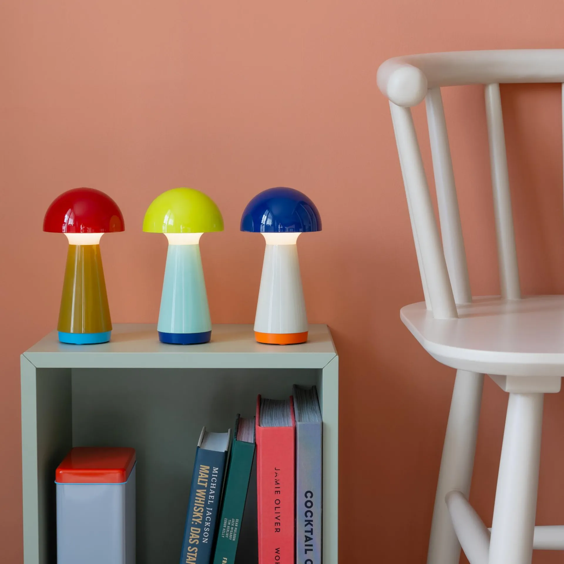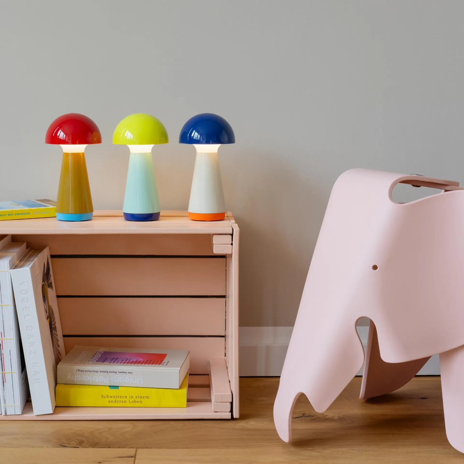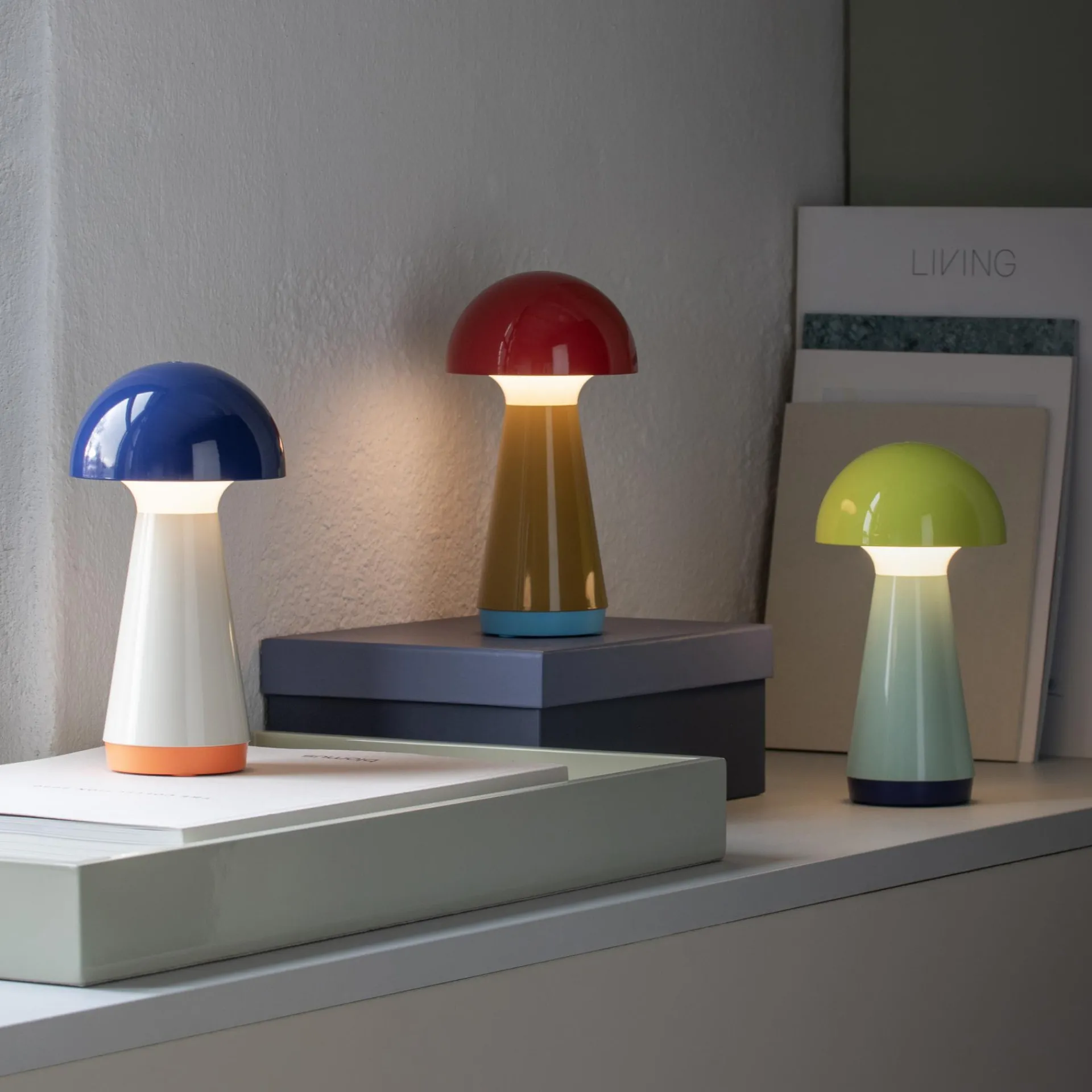 Hey, hier kommt Bobbi. Die kleine Version der Leuchte Bob leuchtet sich sofort in alle Herzen und findet dank der handlichen Größe überall ein gutes Plätzchen. Einmal am USB-Port aufgeladen, spendet die Leuchte bis zu 46 Stunden Licht – ganz ohne Kabel. Bobbi ist 3-stufig dimmbar, spritzwassergeschützt und deshalb auch im Badezimmer oder auf der Terrasse ein hübscher Zeitgenosse.