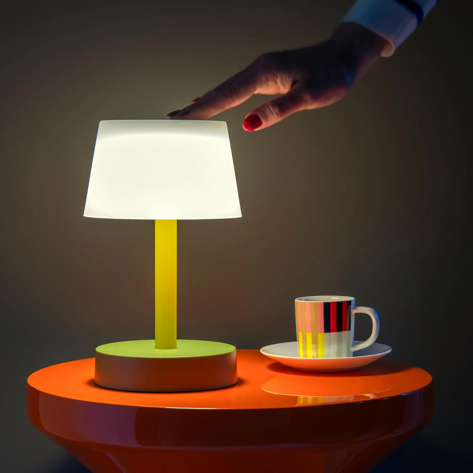 Der kleine Fritz setzt mit seiner kompakten Form ein klares Statement auf dem Regal oder dem Terrassentisch. Fritz kann am USB-C-Port aufgeladen werden und spendet bei vollem Akku bis zu 100 Stunden Licht – ganz ohne Kabel. Per Touch-Sensor auf dem Lampenschirm lässt sich die kleine Leuchte stufenlos dimmen, außerdem ist Fritz spritzwassergeschützt und kann deshalb auch problemlos im Badezimmer oder im Außenbereich zum Einsatz kommen.