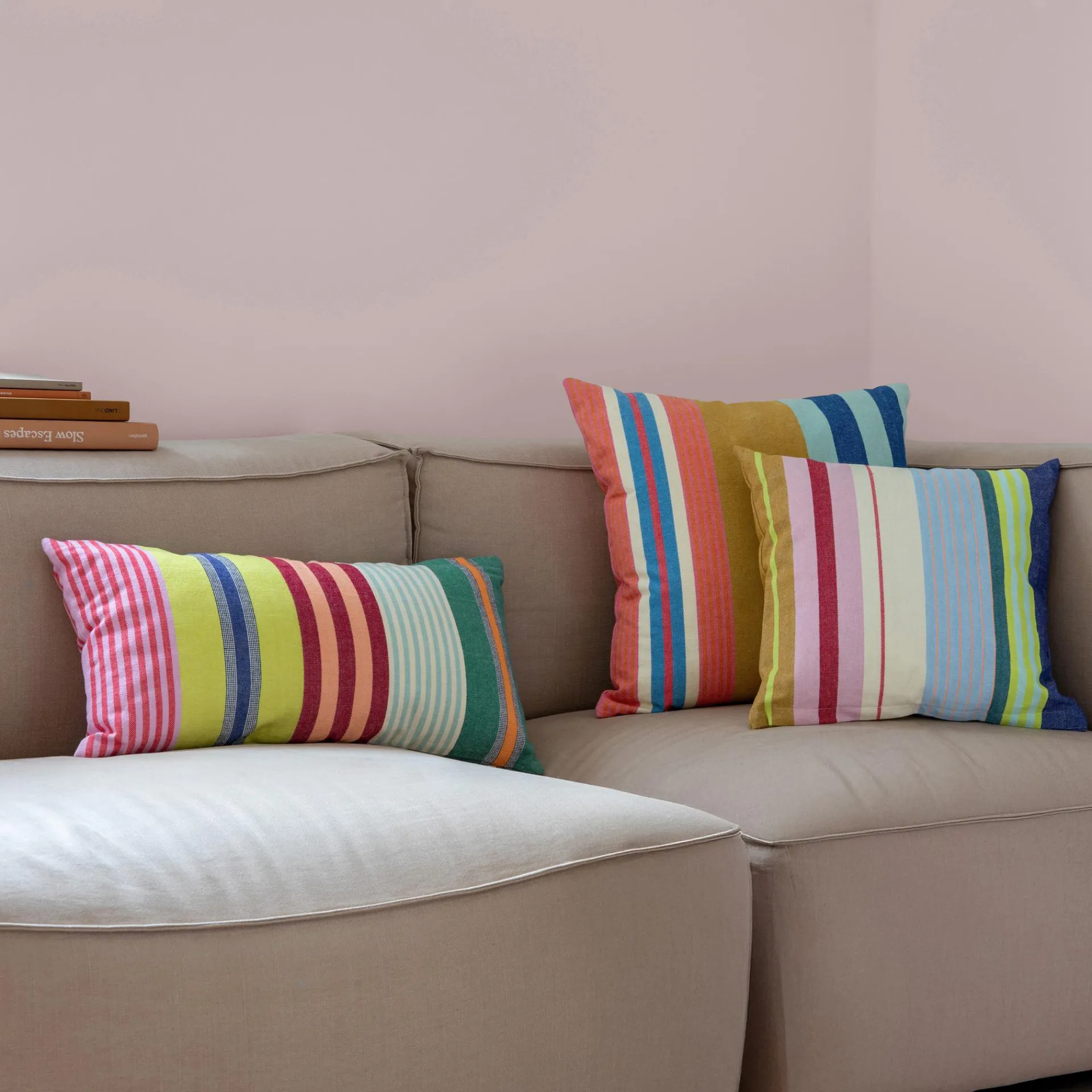Sommerflair das ganze Jahr hindurch: Die tollen Farbkombinationen und das hochwertige Material aus festem Webstoff machen das Kissen zum gemütlichen Highlight auf dem Sofa und dem Lieblingssessel.