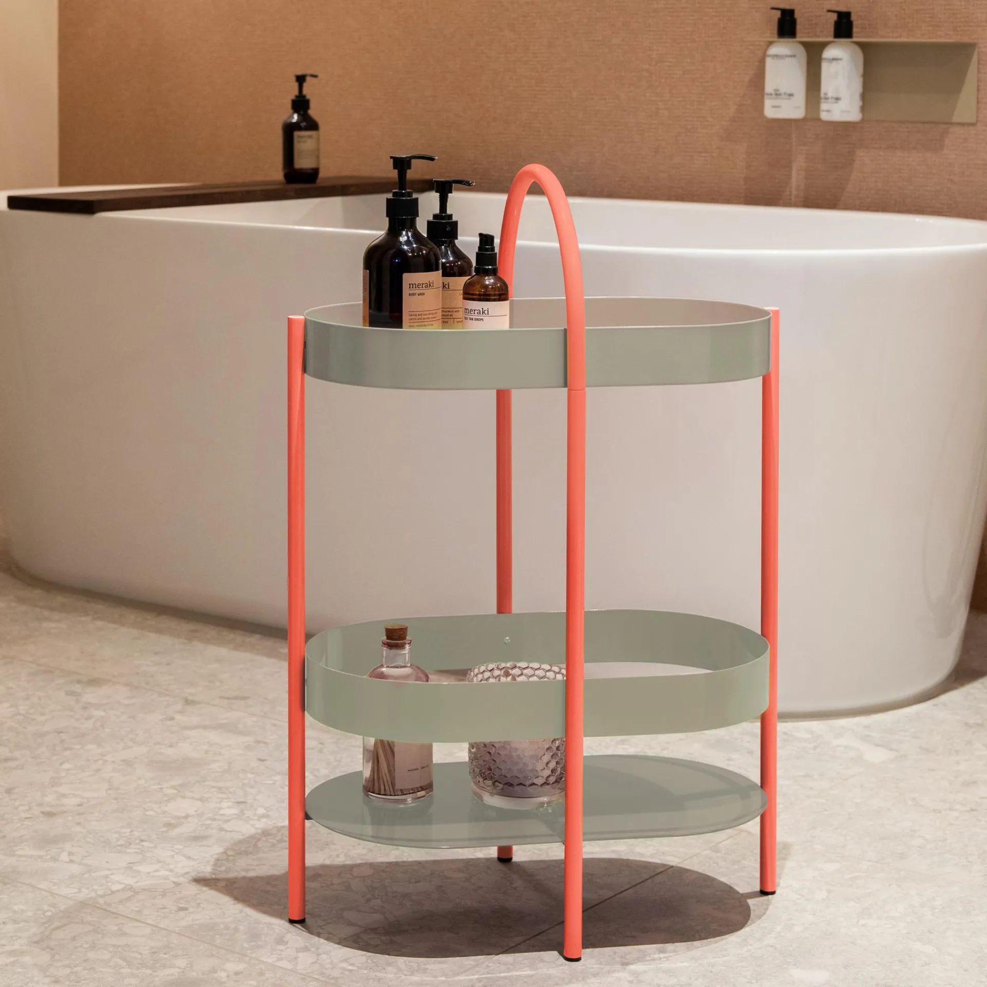 Regal, Beistelltisch, Barmöbel – die Beistellkonsole Barbara kann mit ihren beiden Ebenen und dem praktischen Henkel multifunktional genutzt werden. Getränke und Snacks von der Küche auf die Terrasse, Bücher und Leuchte vom Wohnzimmer ins Schlafzimmer – dank ihrer Konstruktion ist Barbara leicht zu transportieren, ohne dass etwas herunterfällt.