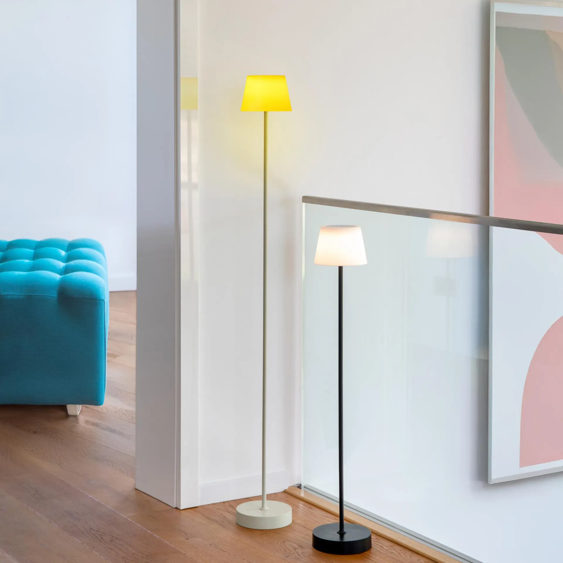 Drinnen oder draußen, in ganzer Höhe oder verkürzt ohne Mittelteil, gedimmt oder mit voller Leuchtkraft – die Stehleuchte William ist so flexibel, dass sie zu jeder Lebenslage passt. Einmal aufgeladen, leuchtet die energieeffiziente Leuchte bis zu 80 Stunden auf niedrigster Stufe – ganz ohne Kabel. Per Touch-Sensor auf dem Lampenschirm lässt sich die Leuchte ein- und ausschalten sowie dreistufig dimmen. Ob als atmosphärisches Licht im Wohnzimmer oder auf der Terrasse, der schlanke William macht überall eine gute Figur.