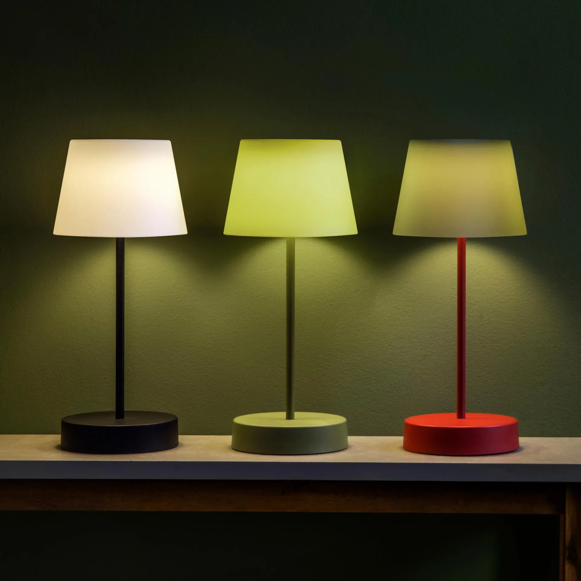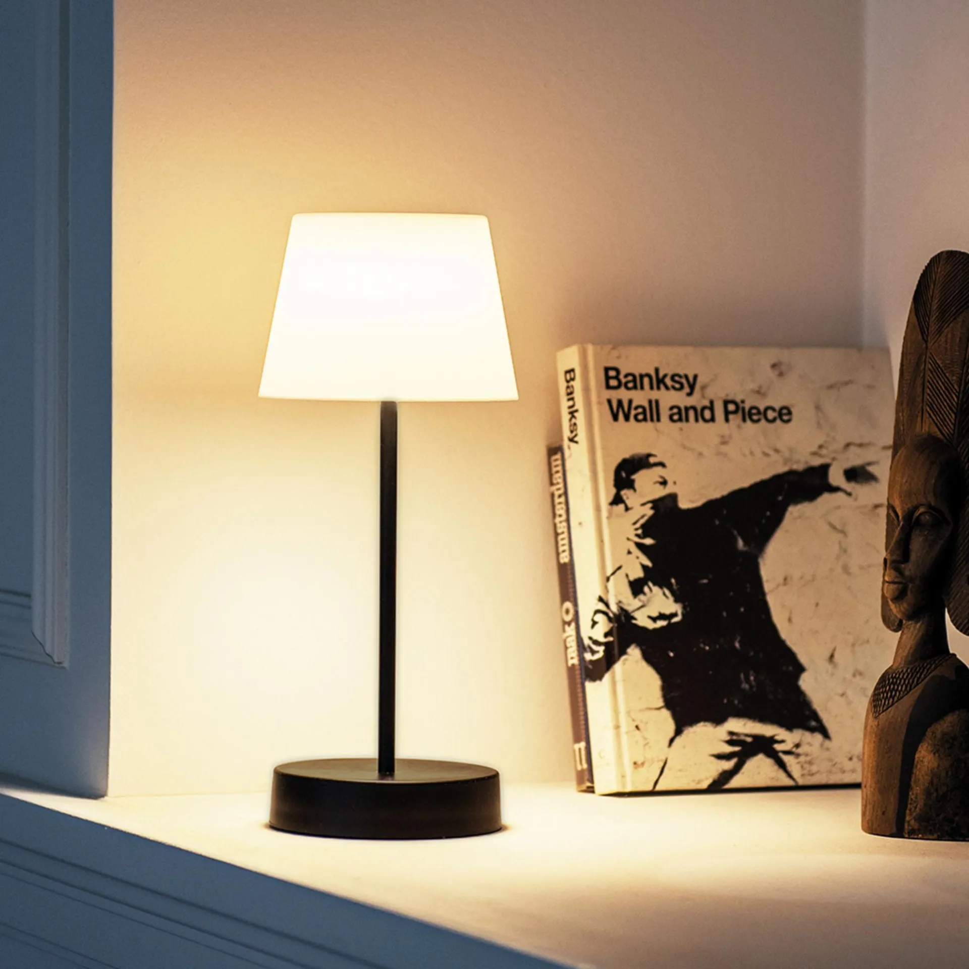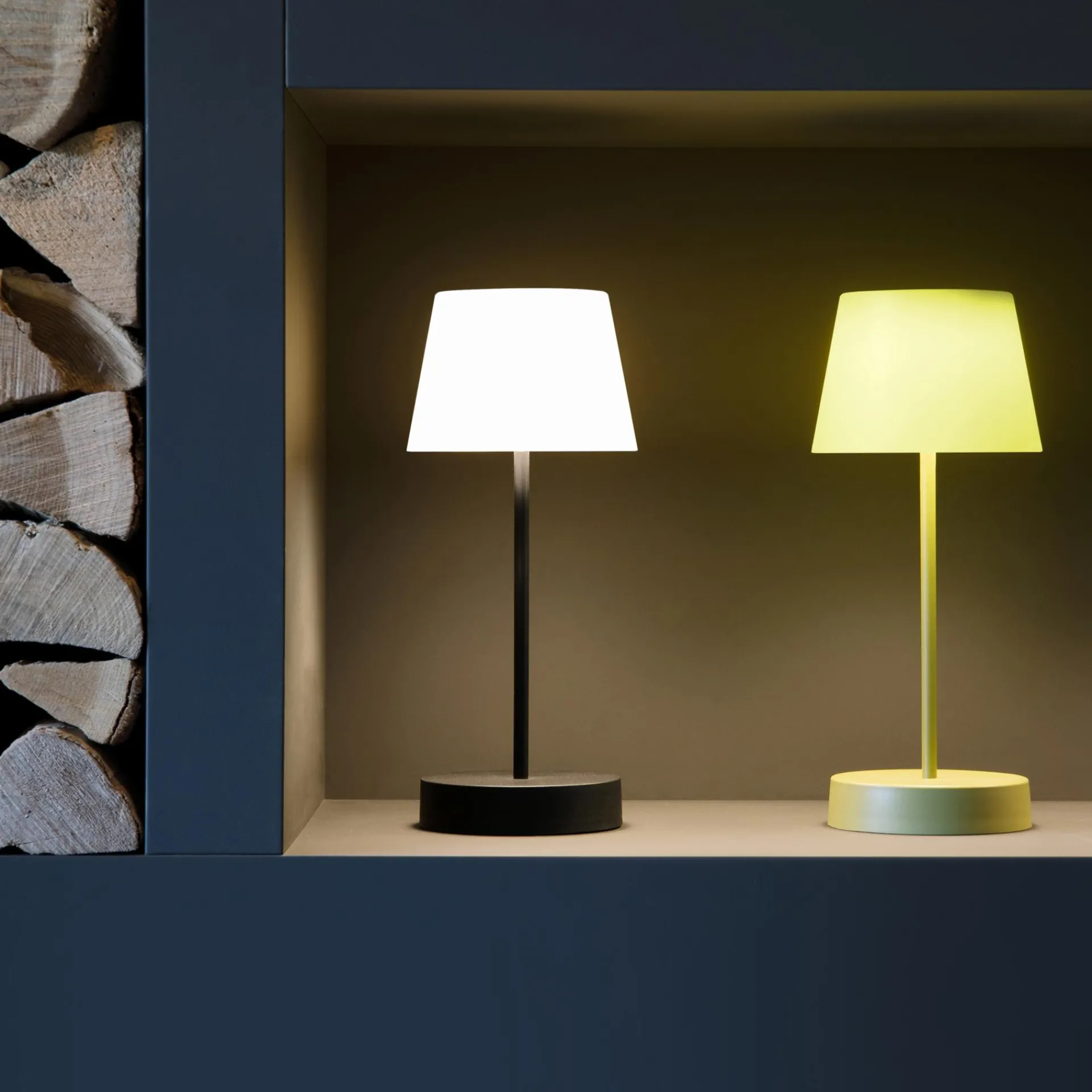 Klassisches Leuchtendesign trifft moderne Lichttechnik: Die energieeffiziente LED-Tischleuchte Oscar schafft ein behagliches Lichtambiente, wo immer man gerade möchte. Über das USB-Kabel aufgeladen, leuchtet sie bis zu 80 Stunden mit einer Akkuladung und wandert von der Kommode auf den Esstisch, dann auf den Nachtschrank und wieder zurück. Einfacher geht es kaum: Kurz oben angetippt, schon ist Oscar ein- und ausgeschaltet sowie in drei Stufen dimmbar. Auch für den Außenbereich geeignet.