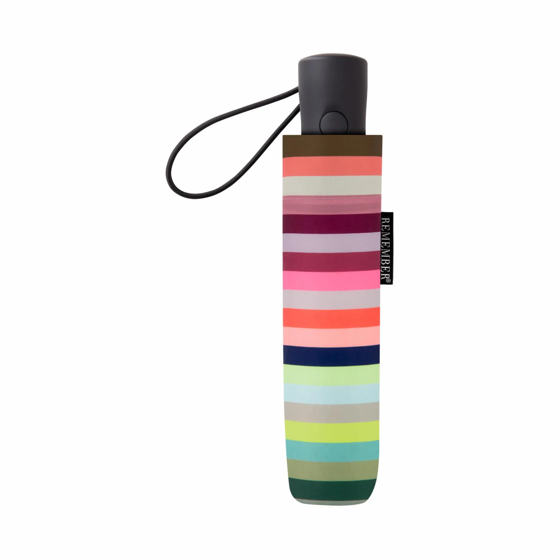 Dieser handliche und knallbunte Taschenschirm trotzt jedem Regenguss und passt in jede Handtasche. Auf Knopfdruck sorgen die leuchtenden Farben für gute Laune – auch bei richtigem Sauwetter. Und wenn der Schauer vorüber ist? Schnell wieder das Knöpfchen drücken, Schirm zusammenschieben und im Handumdrehen ist er wieder in der farblich passenden Schutzhülle verschwunden.