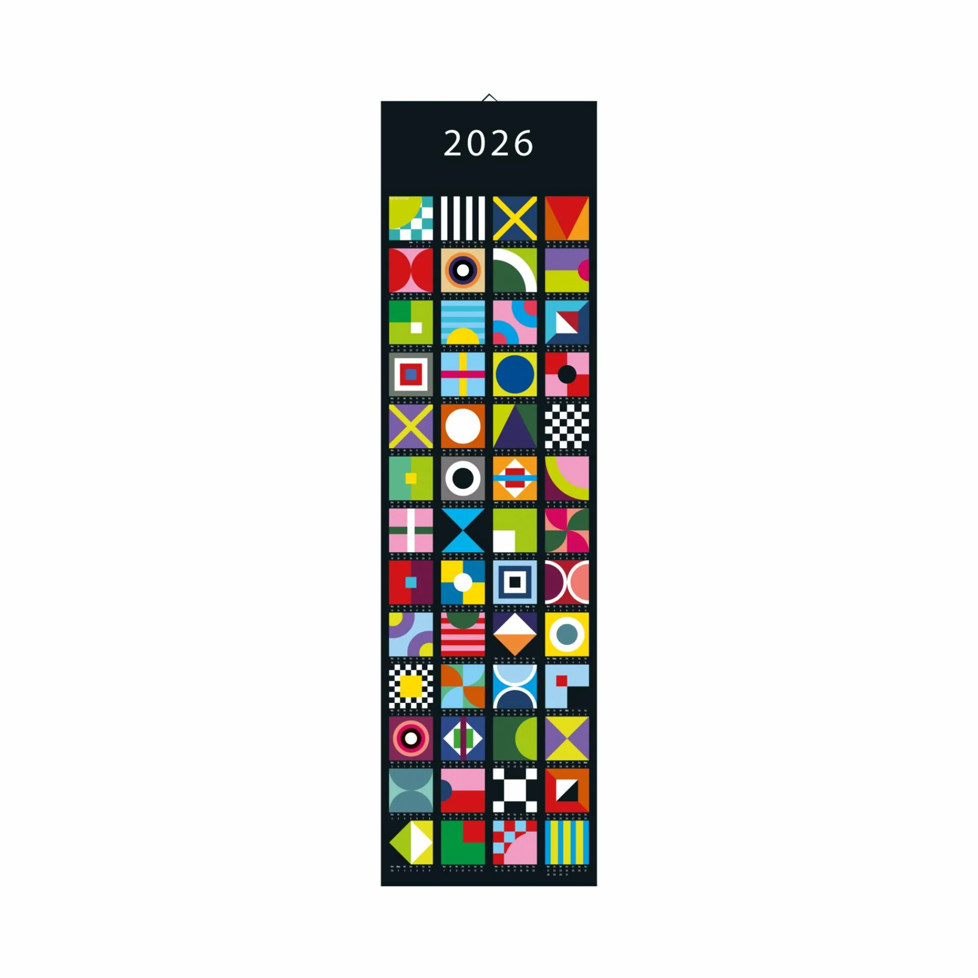 Großformatig und wunderschön! Alle Wochen des Jahres werden auf diesem einseitigen Wandkalender durch farbenfrohe Formen symbolisiert. Jeder Kalender wird zusammen mit zwei Kunststoffleisten (oben/unten) geliefert.