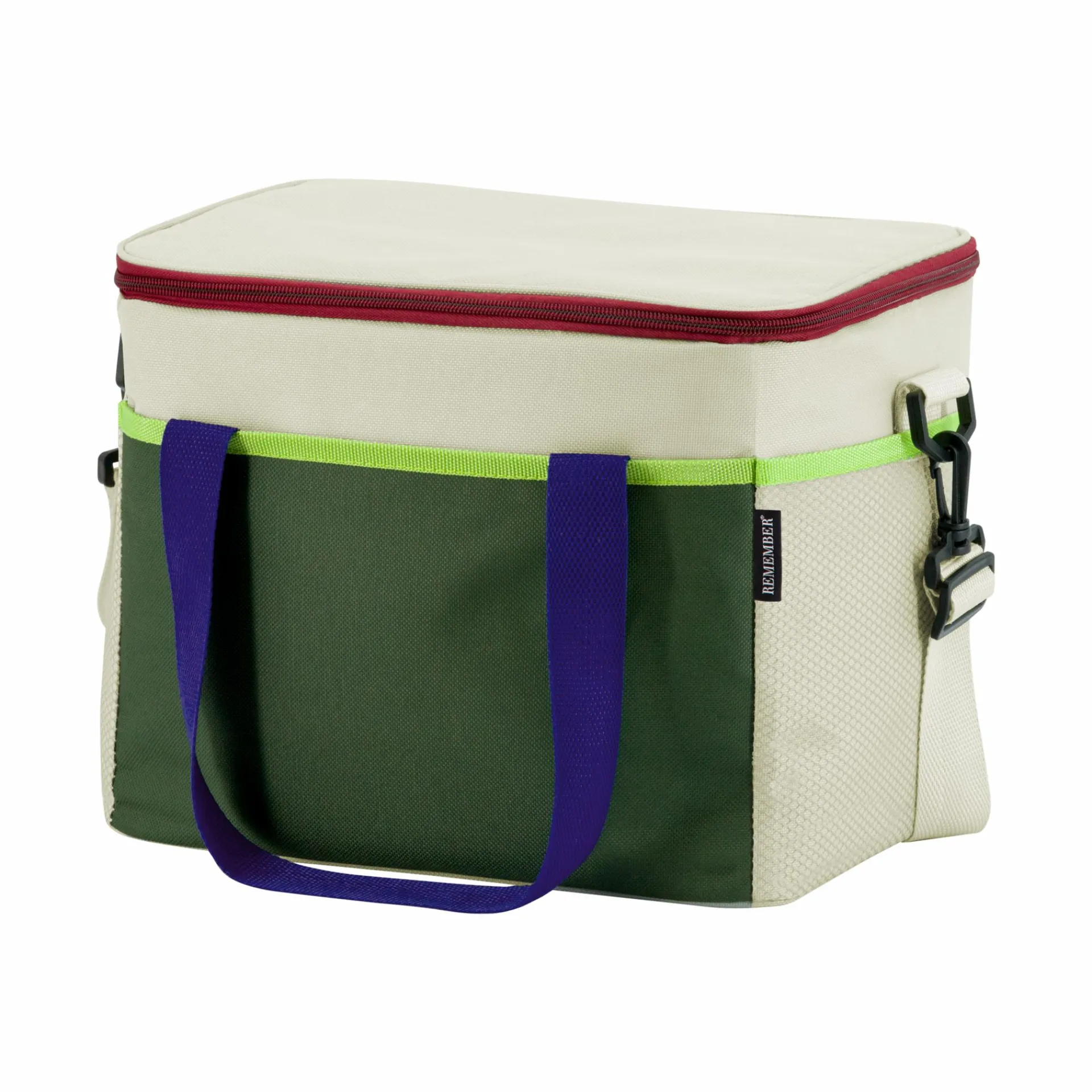 Halten Getränke und Speisen unterwegs schön kühl. Ideal für Autofahrten, sommerliche Picknicks oder den Tag am Strand. Mit praktischen Gummihalterungen, Netzen und Fächern für Geschirrtücher, Flaschenöffner und weitere kleine Dinge.