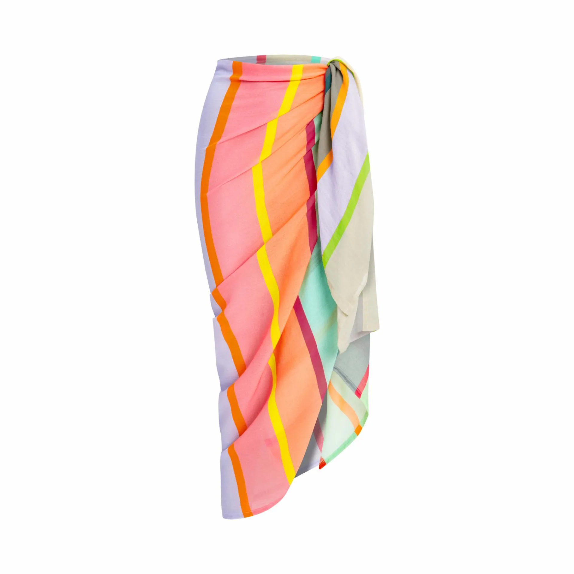 Mit diesen Farben könnte der Sommer einfach endlos sein: Ob lässig als Maxi-Rock, Neckholder-Kleid oder Oberteil – das große, sommerliche Tuch ist ein echter Allrounder und je nach Bindetechnik ist man am Strand, im Garten oder sogar auf dem Sommerfest im Handumdrehen gut angezogen.
