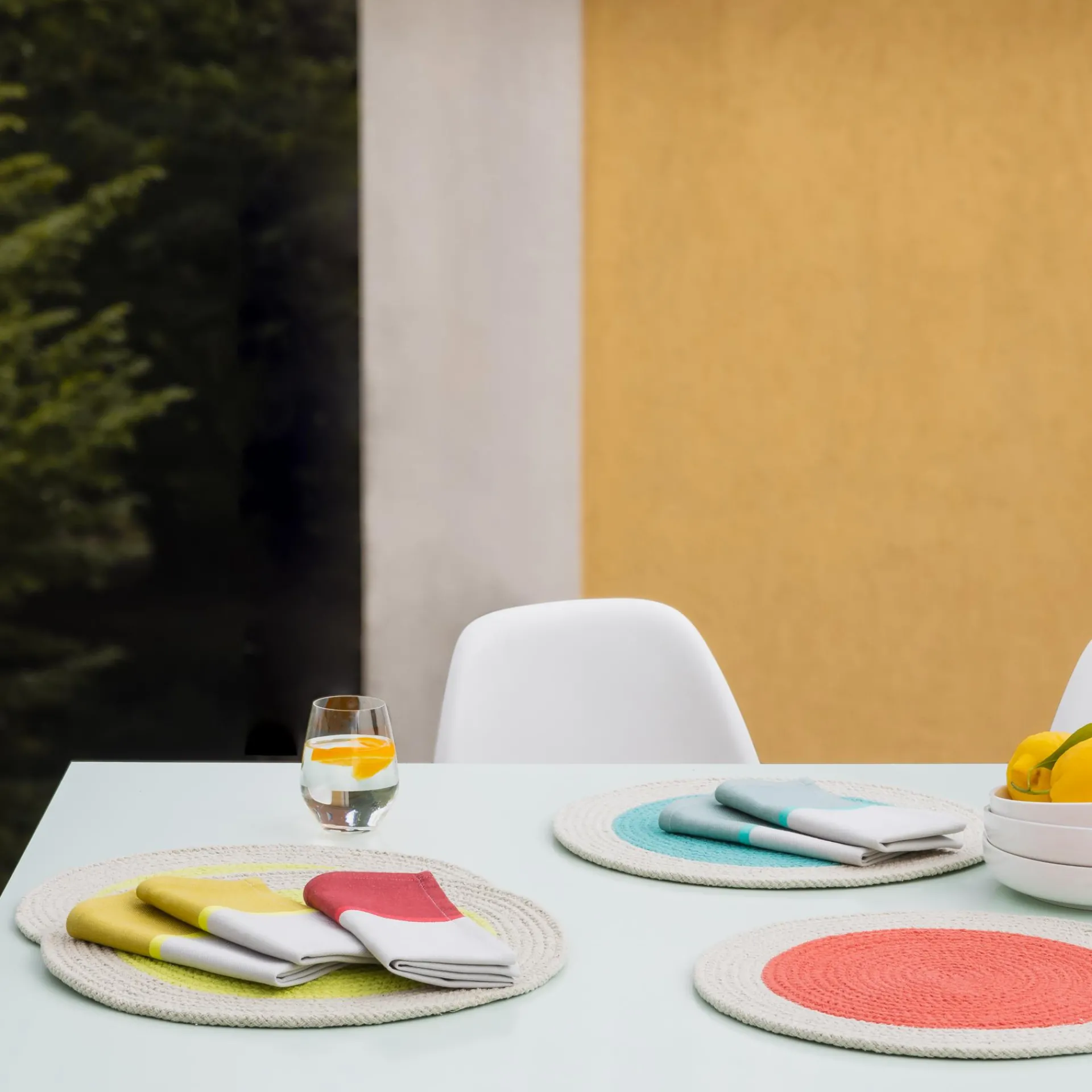 Runde Tischsets, die Farbe auf den Tisch bringen. Mit den Sets aus Baumwollseil wird der gedeckte Tisch noch einladender und die Tischoberfläche ist vor Flecken geschützt. Passende Ergänzung: die auf die Sets farblich abgestimmten Baumwoll-Servietten, die ebenfalls im 2er-Set erhältlich sind.
