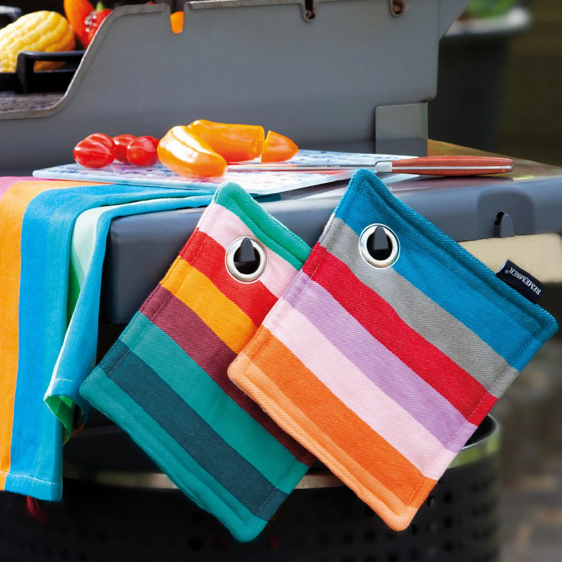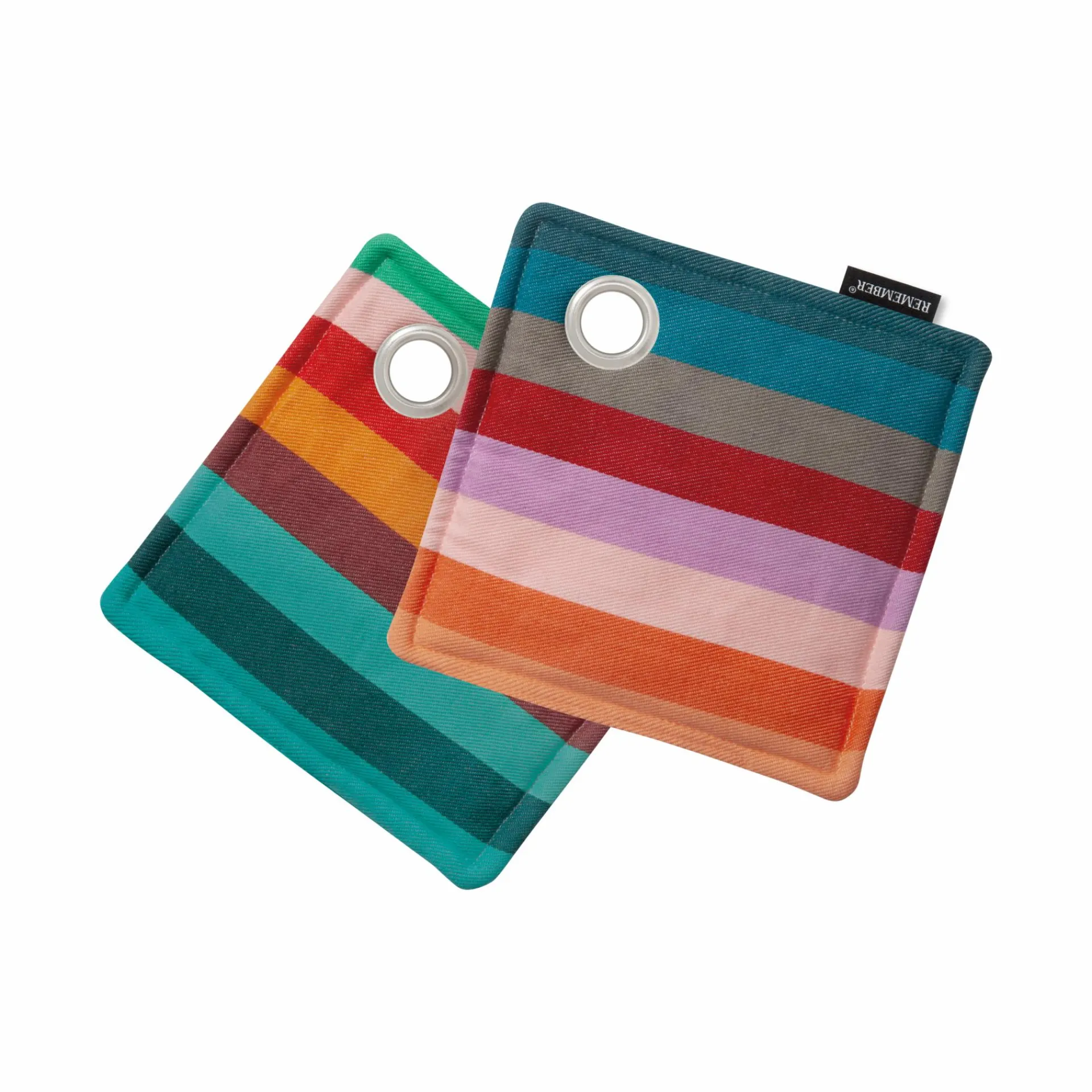 Dekorativer Hitzeschutz: wattierte Topflappen im 2er-Set. In zwei unterschiedlichen aufeinander abgestimmten Designs.