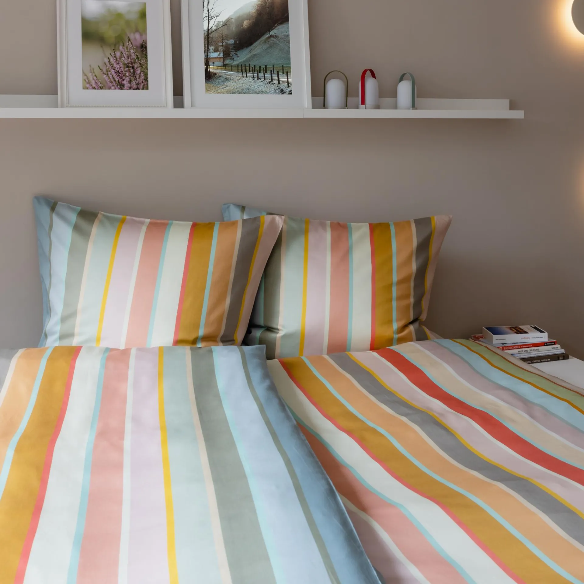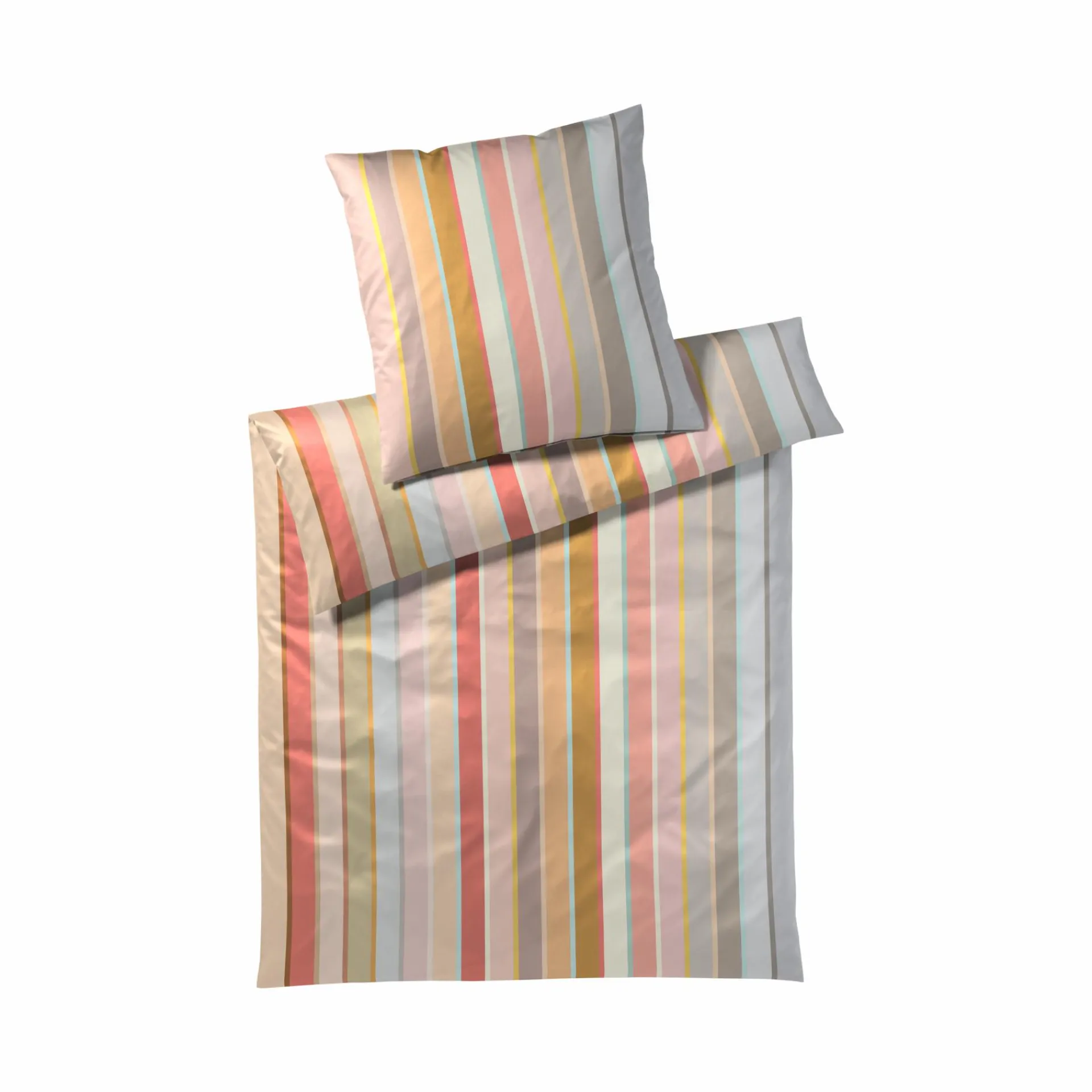 Leuchtende Farben auf seidenweichem Mako-Satin machen das Bett zur Wohlfühloase. Seidig kühl im Sommer und schön warm im Winter – hervorragende Klimaeigenschaften sorgen zu jeder Jahreszeit für ein angenehmes Schlafgefühl.