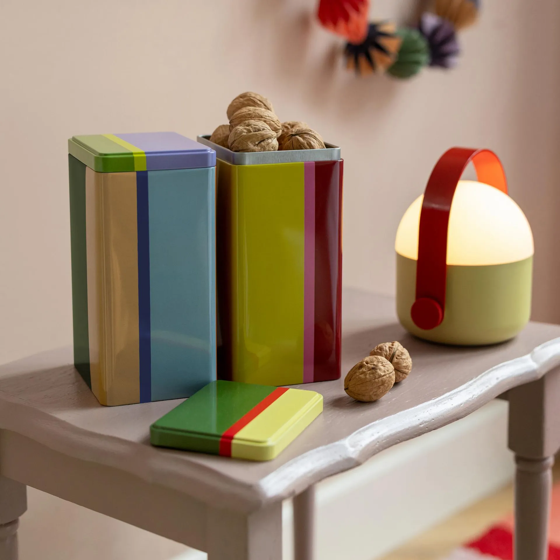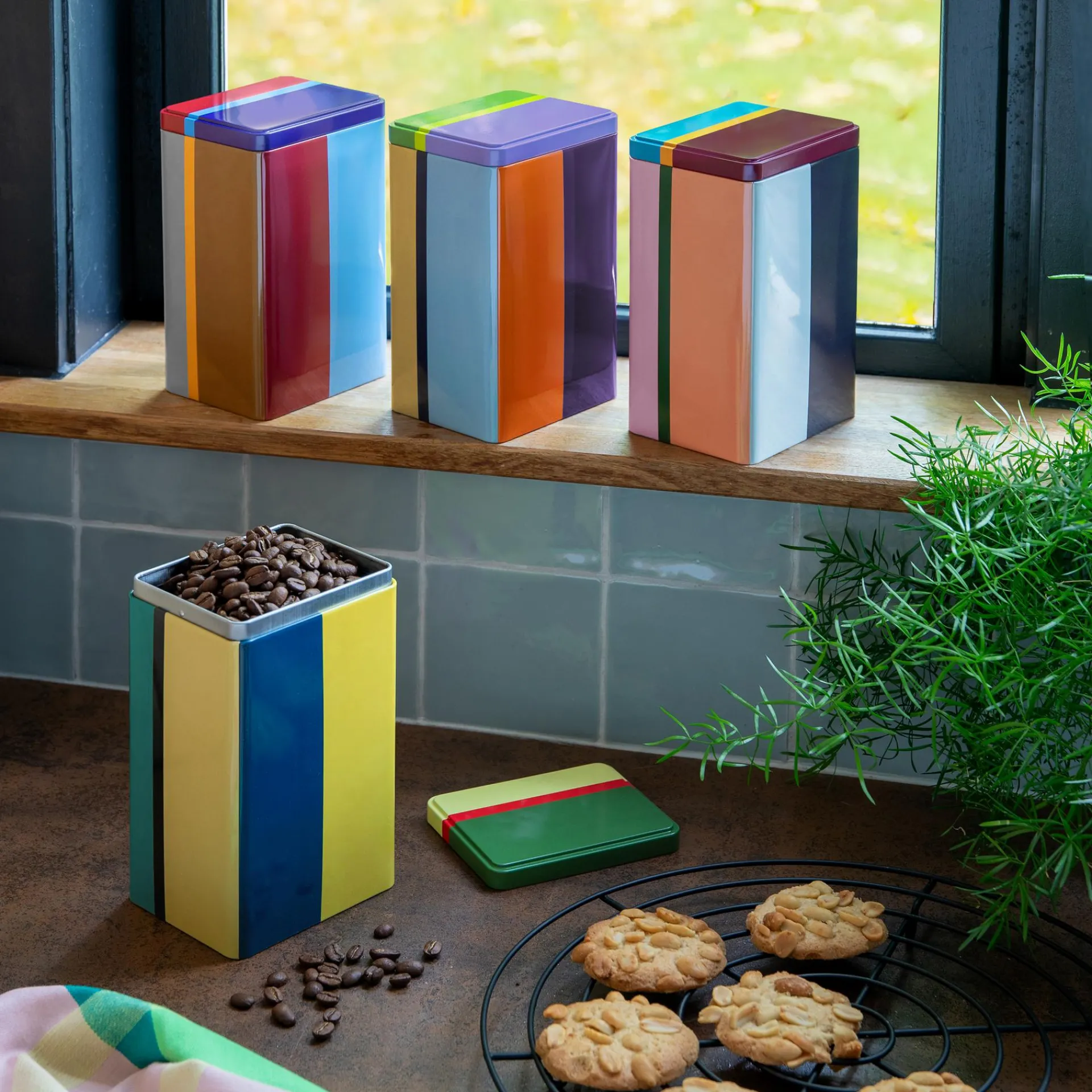 Keine Lust mehr auf angebrochene Verpackungen in Schrank und Regal? Nudeln, Reis, Kaffee oder Mehl warten ab jetzt in diesen dekorativen Aufbewahrungsdosen auf den nächsten Einsatz. Dank der schönen Farbkombinationen sind die Dosen nicht nur von außen ein bunter Lichtblick – auch ihr farbiges Innenleben sorgt für gute Laune bei den ganz alltäglichen Handgriffen.