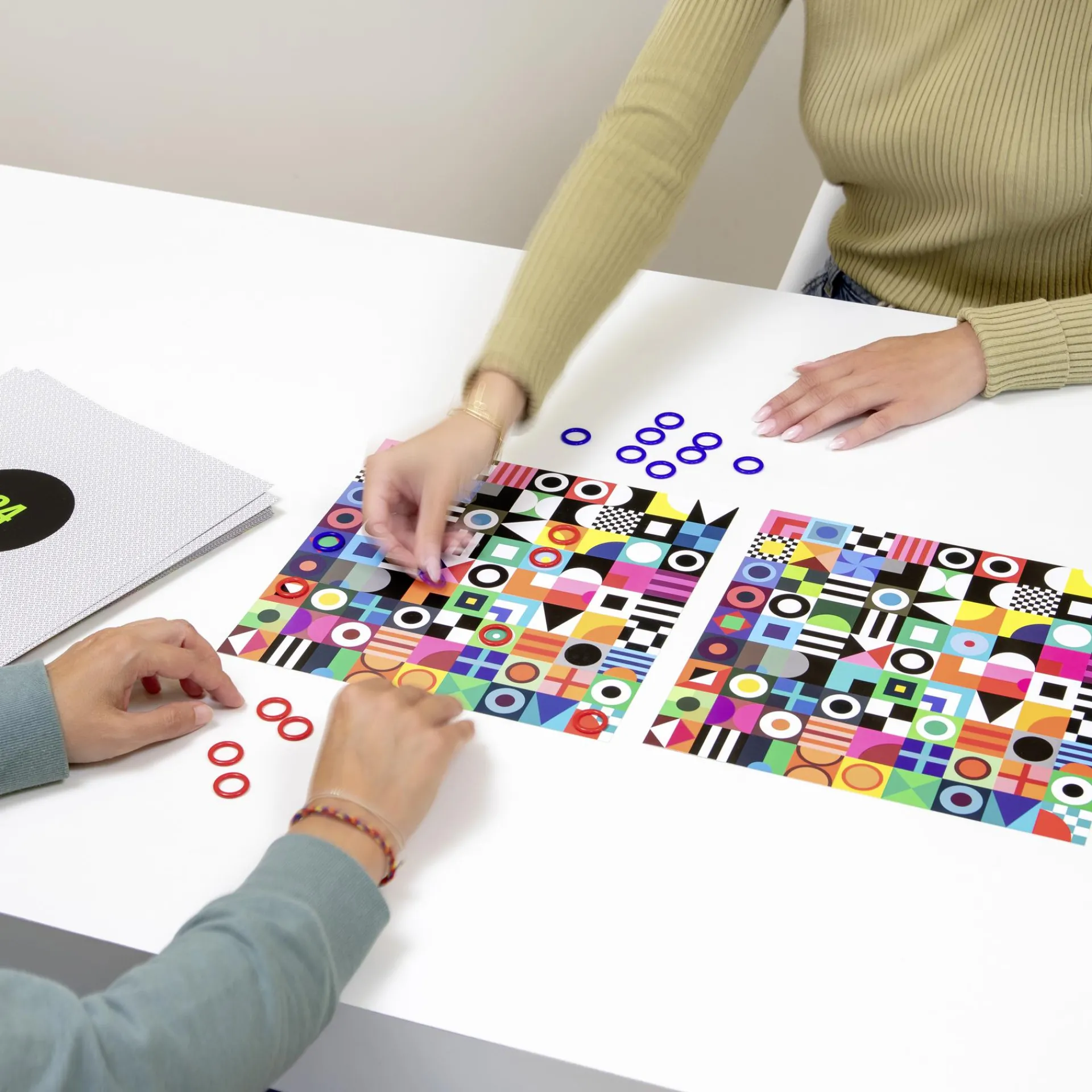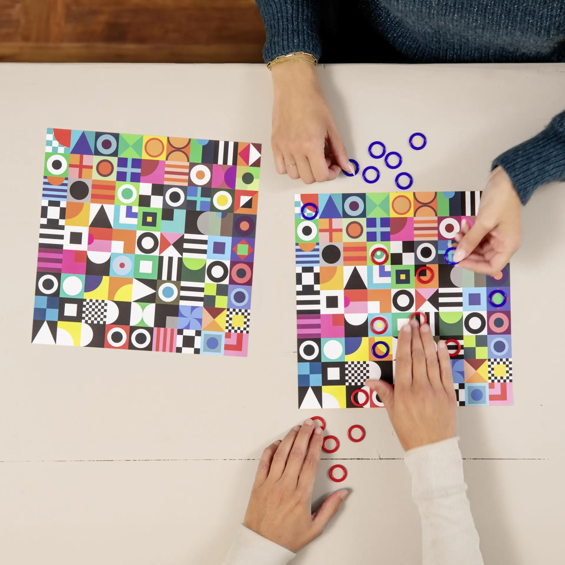2 x 40 Spielblätter, 2 x 40 Spielringe im Baumwollbeutel, Lösungsbuch mit Spielanleitung