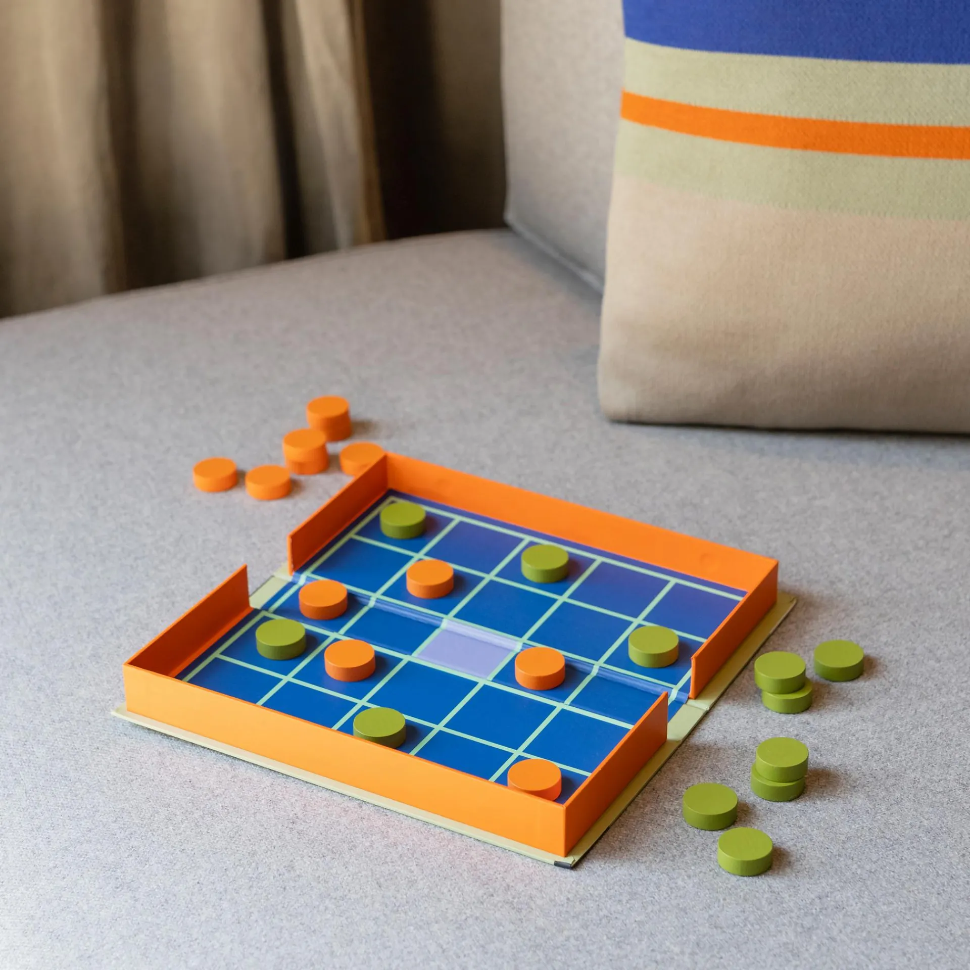 Ein Brettspiel rund um Taktik und Strategie. Wer umzingelt die gegnerischen Spielsteine am geschicktesten und nimmt sie so aus dem Spiel?