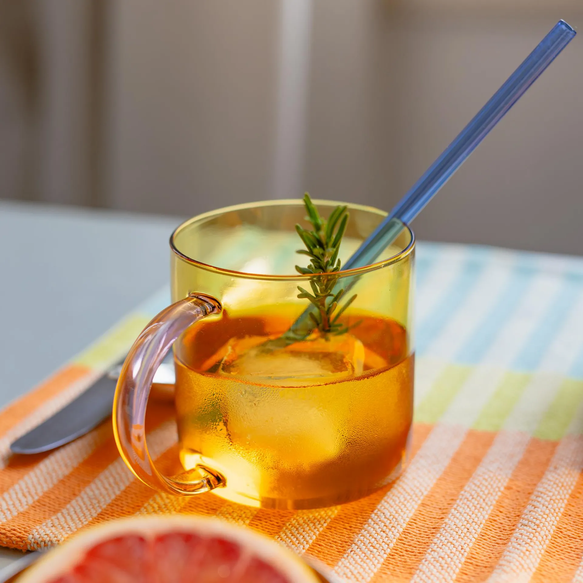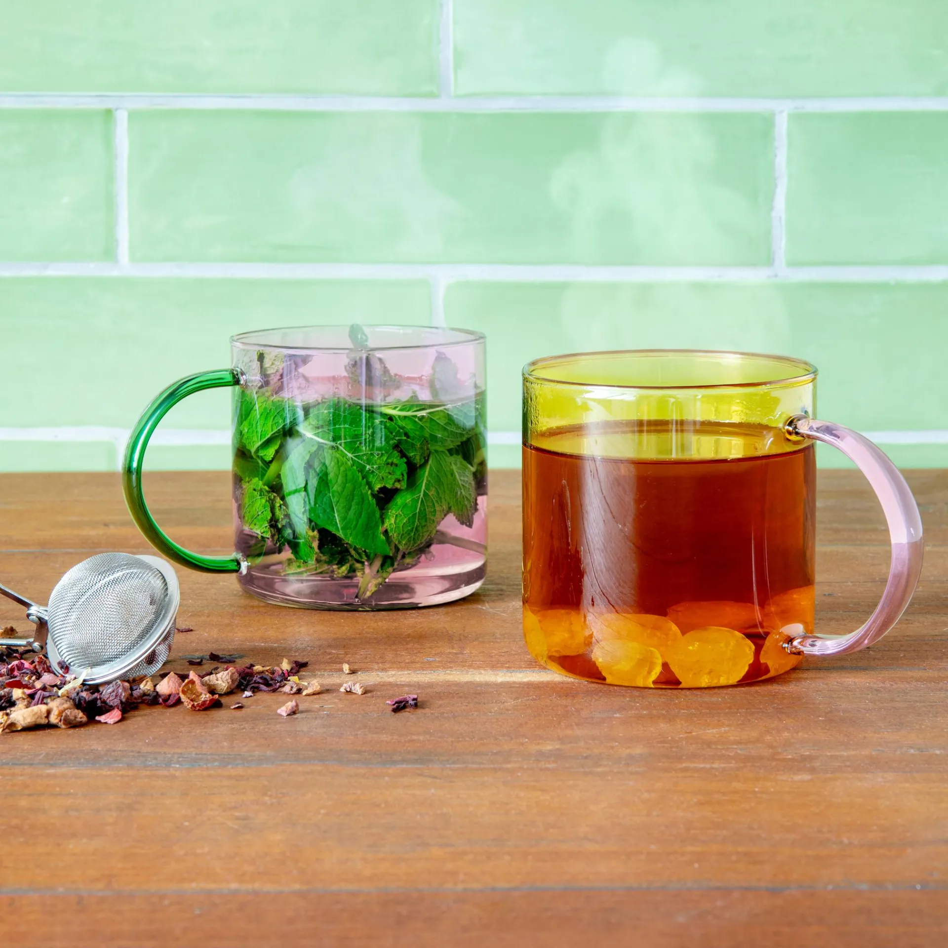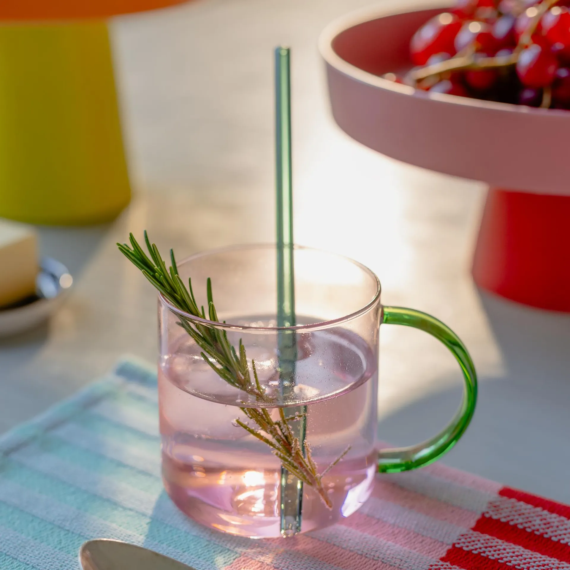 Ob heiße Schokolade oder Eiskaffee – dank des Borosilikatglases ist der Glasbecher mit dem hübschen farbigen Henkel zart und robust zugleich. Heiße Getränke oder gefrorene Desserts können dem Material nichts anhaben. Und auch gestalterisch ist der Becher ein Meister der Kontraste, denn der filigrane Becher besitzt ein Fassungsvermögen von großzügigen 500 Millilitern.