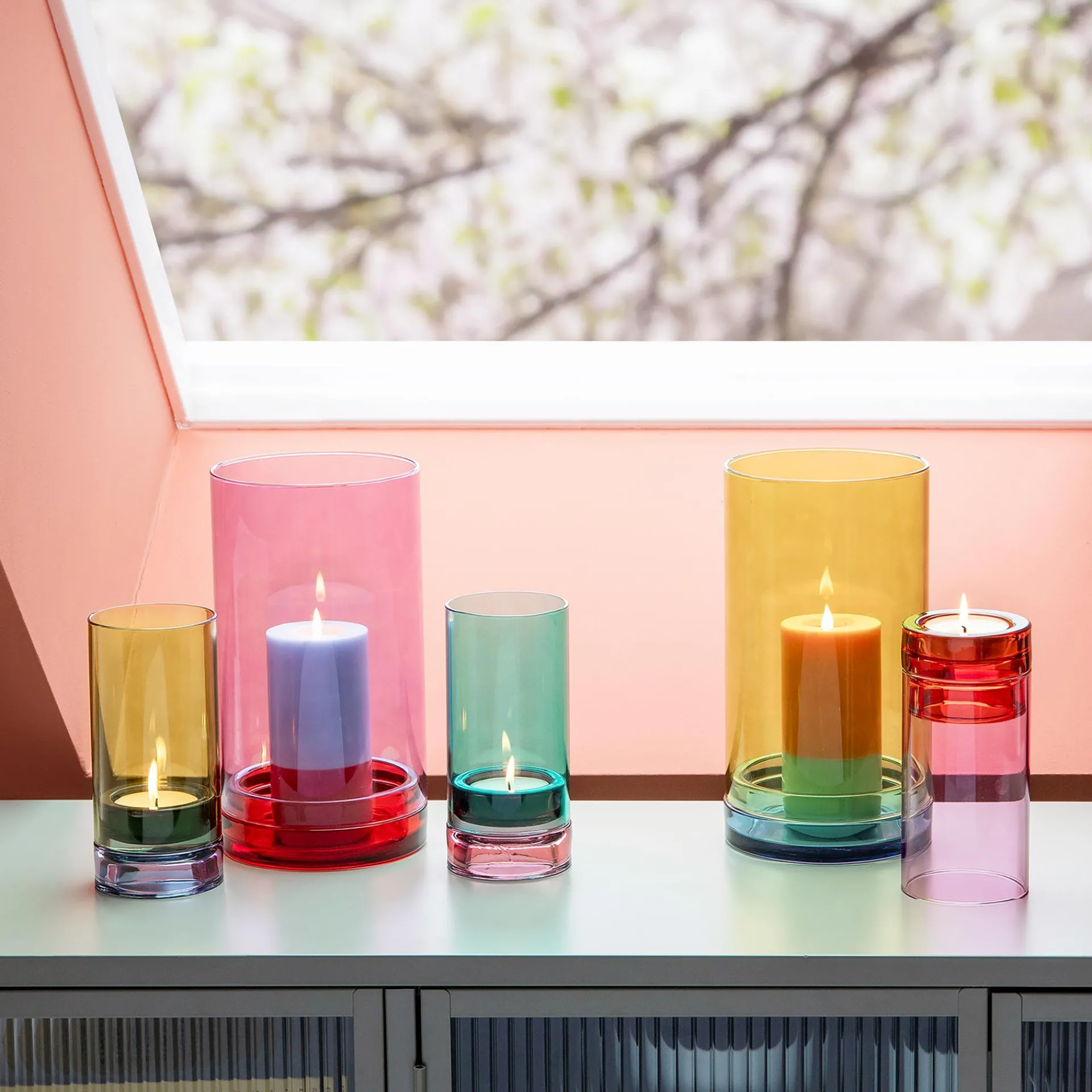 Das große Windlicht Lucius ist einfach ein Hingucker. Das Design ist unterteilt in einen geraden Zylinder, der die Kerze vor Zugluft schützt, und einen farblich abgesetzten Sockel. Das in Handarbeit gefertigte Windlicht besticht so mit Color-Blocking im XL-Format und sorgt mit oder ohne Blockkerze für einen schönen Farbakzent im Haus oder auf der Terrasse.