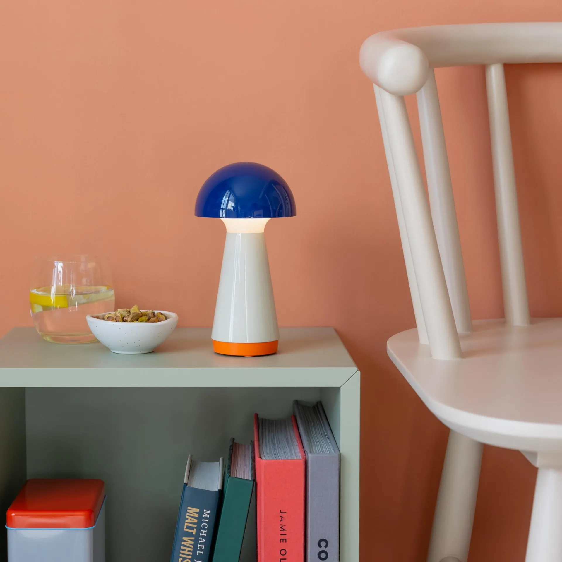 Hey, hier kommt Bobbi. Die kleine Version der Leuchte Bob leuchtet sich sofort in alle Herzen und findet dank der handlichen Größe überall ein gutes Plätzchen. Einmal am USB-Port aufgeladen, spendet die Leuchte bis zu 46 Stunden Licht – ganz ohne Kabel. Bobbi ist 3-stufig dimmbar, spritzwassergeschützt und deshalb auch im Badezimmer oder auf der Terrasse ein hübscher Zeitgenosse.