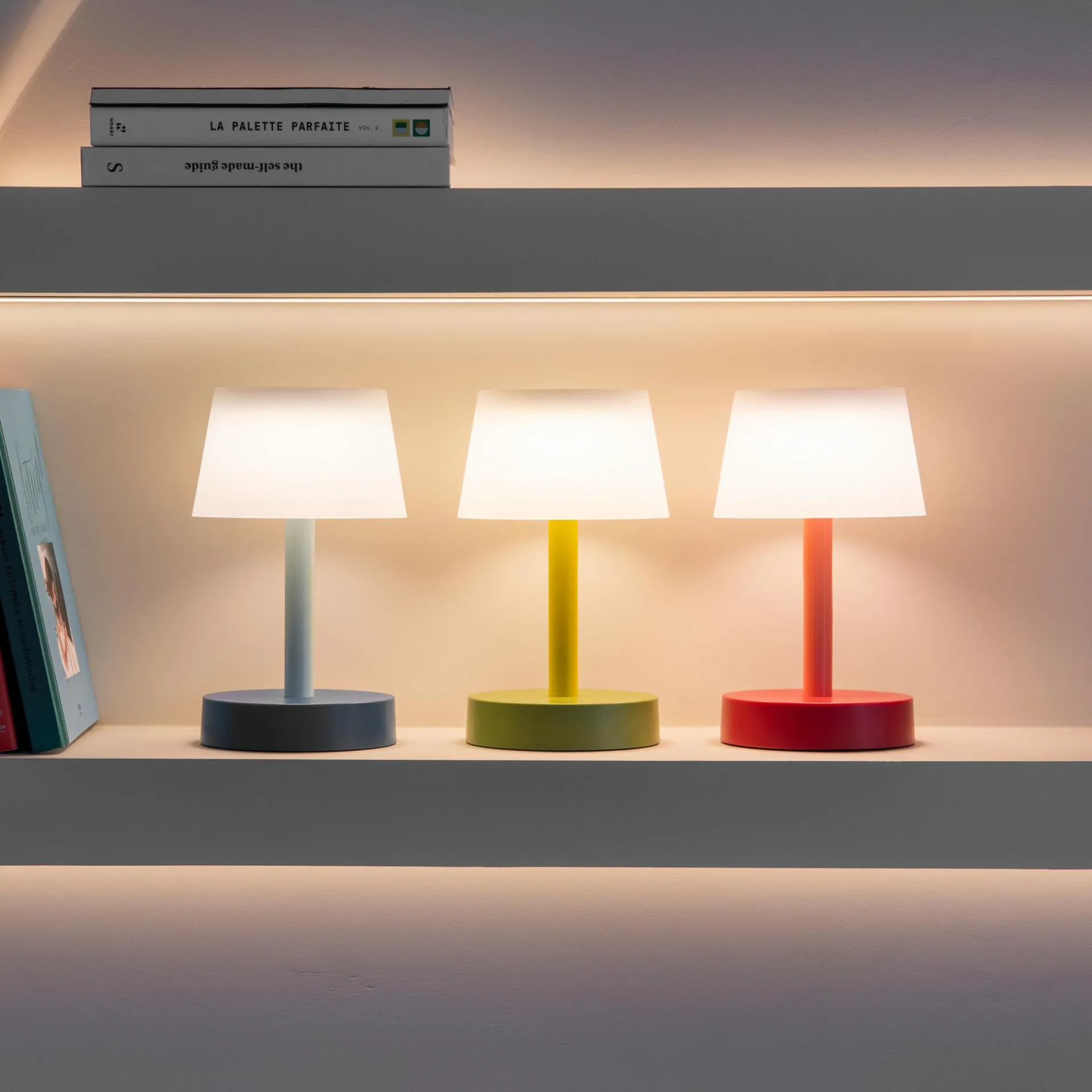 Der kleine Fritz setzt mit seiner kompakten Form ein klares Statement auf dem Regal oder dem Terrassentisch. Fritz kann am USB-C-Port aufgeladen werden und spendet bei vollem Akku bis zu 100 Stunden Licht – ganz ohne Kabel. Per Touch-Sensor auf dem Lampenschirm lässt sich die kleine Leuchte stufenlos dimmen, außerdem ist Fritz spritzwassergeschützt und kann deshalb auch problemlos im Badezimmer oder im Außenbereich zum Einsatz kommen.