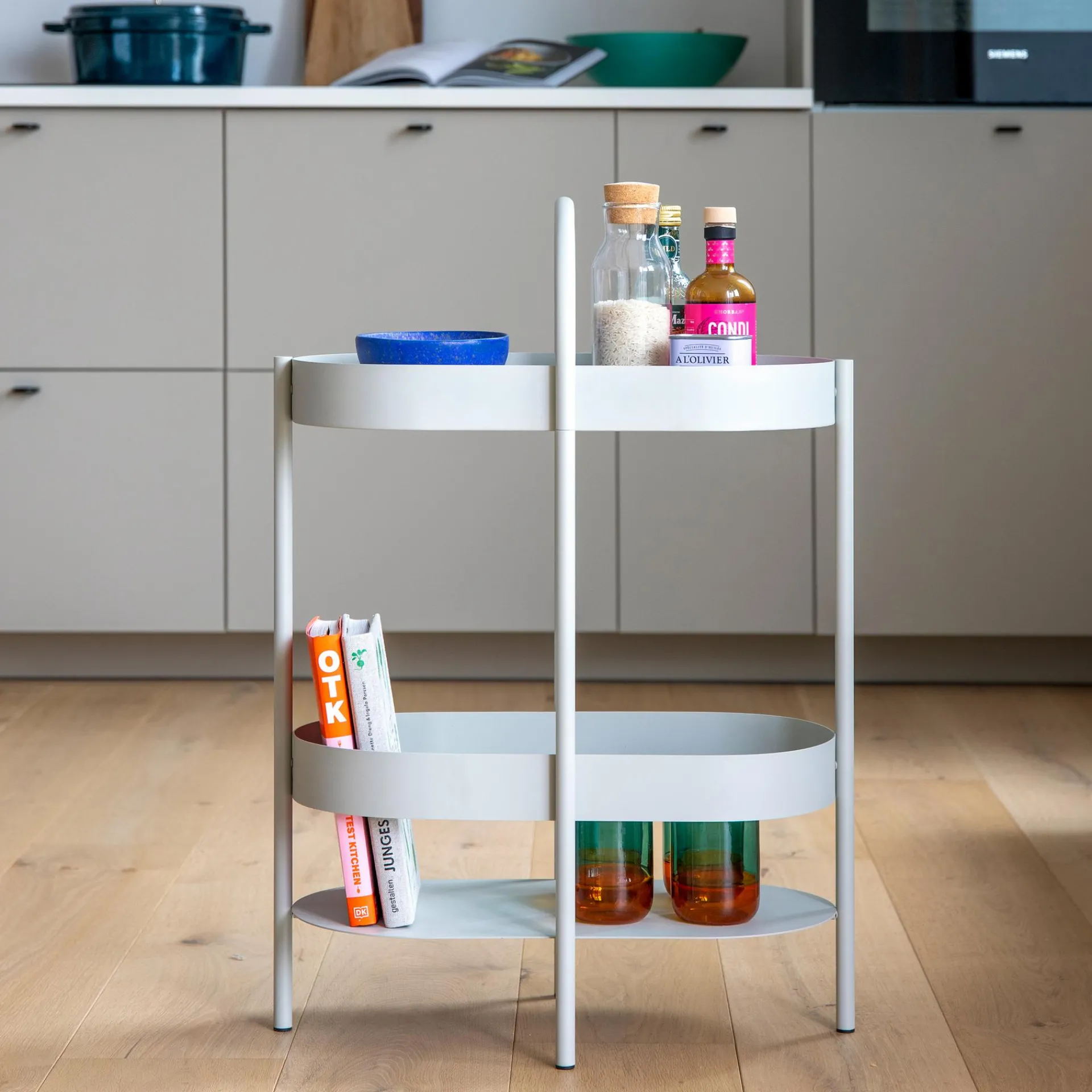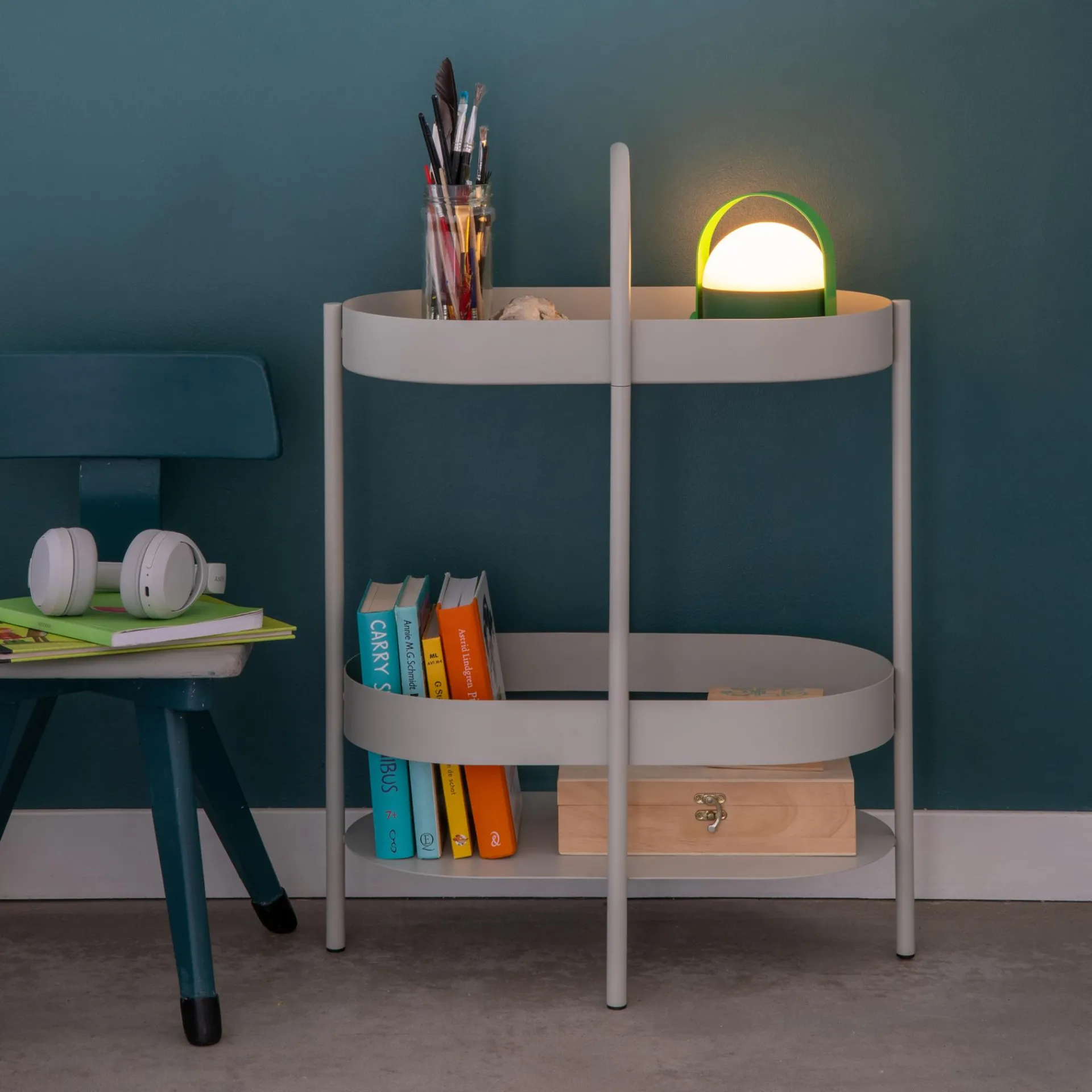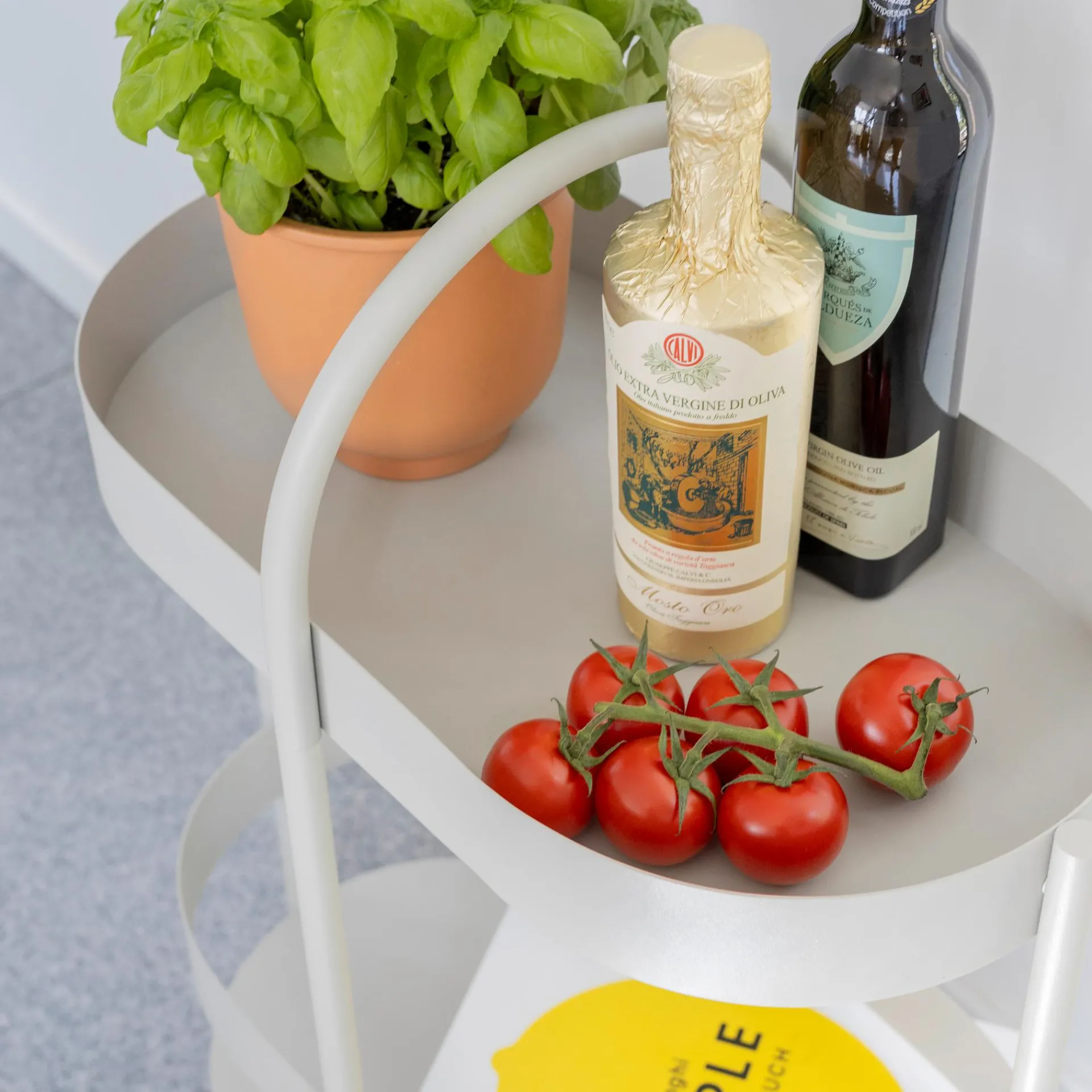 Regal, Beistelltisch, Barmöbel – die Beistellkonsole Barbara kann mit ihren beiden Ebenen und dem praktischen Henkel multifunktional genutzt werden. Getränke und Snacks von der Küche auf die Terrasse, Bücher und Leuchte vom Wohnzimmer ins Schlafzimmer – dank ihrer Konstruktion ist Barbara leicht zu transportieren, ohne dass etwas herunterfällt.