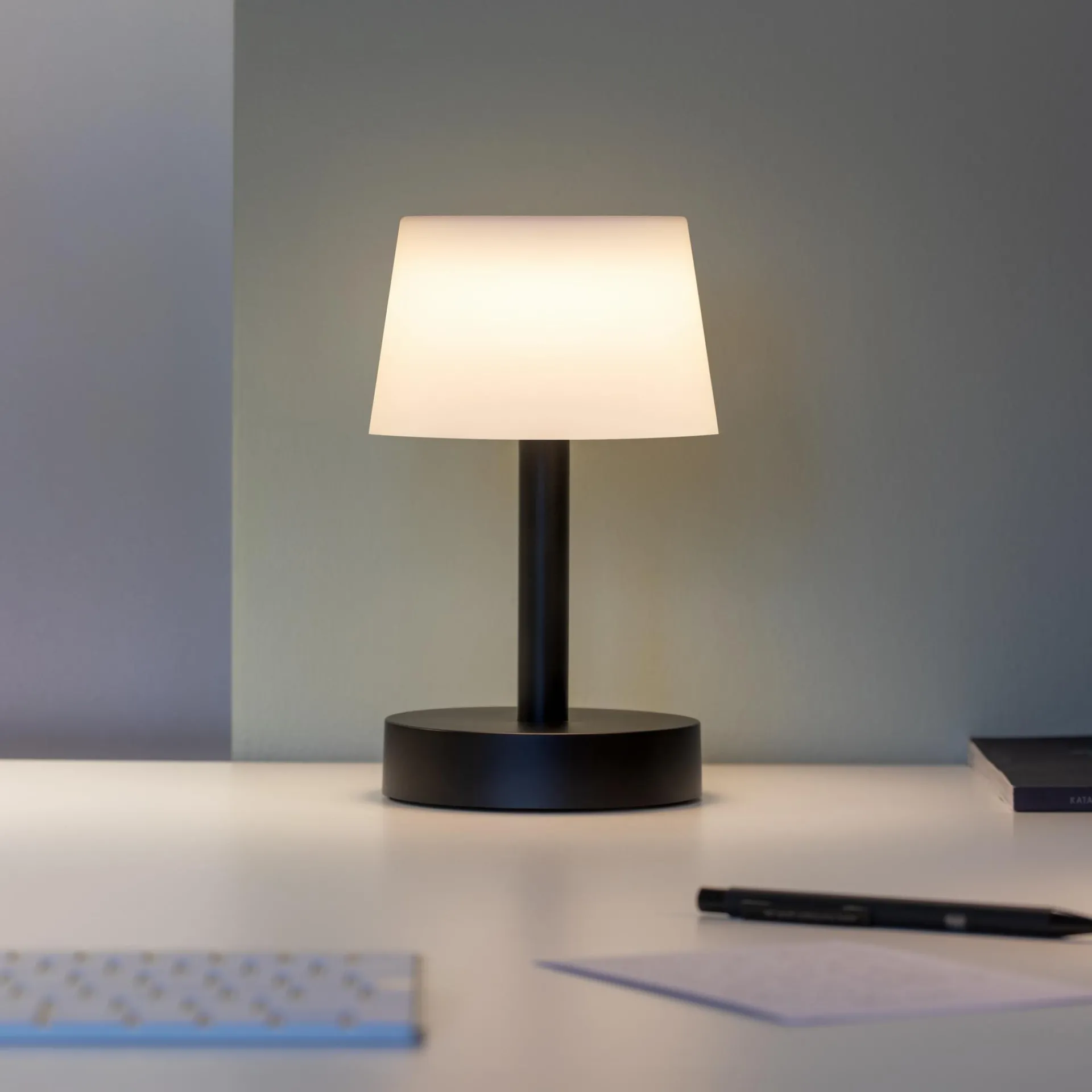 Der kleine Fritz setzt mit seiner kompakten Form ein klares Statement auf dem Regal oder dem Terrassentisch. Fritz kann am USB-C-Port aufgeladen werden und spendet bei vollem Akku bis zu 100 Stunden Licht – ganz ohne Kabel. Per Touch-Sensor auf dem Lampenschirm lässt sich die kleine Leuchte stufenlos dimmen, außerdem ist Fritz spritzwassergeschützt und kann deshalb auch problemlos im Badezimmer oder im Außenbereich zum Einsatz kommen.