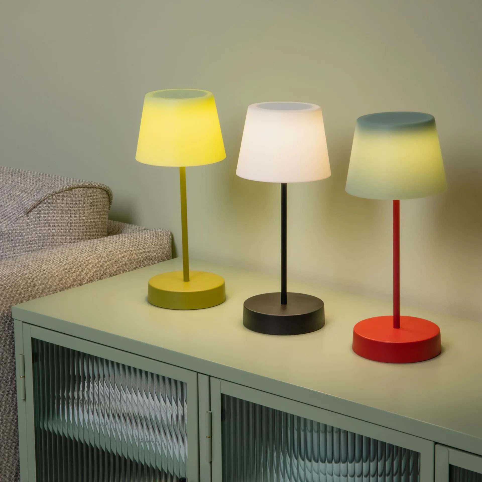 Klassisches Leuchtendesign trifft moderne Lichttechnik: Die energieeffiziente LED-Tischleuchte Oscar schafft ein behagliches Lichtambiente, wo immer man gerade möchte. Über das USB-Kabel aufgeladen, leuchtet sie bis zu 80 Stunden mit einer Akkuladung und wandert von der Kommode auf den Esstisch, dann auf den Nachtschrank und wieder zurück. Einfacher geht es kaum: Kurz oben angetippt, schon ist Oscar ein- und ausgeschaltet sowie in drei Stufen dimmbar. Auch für den Außenbereich geeignet.