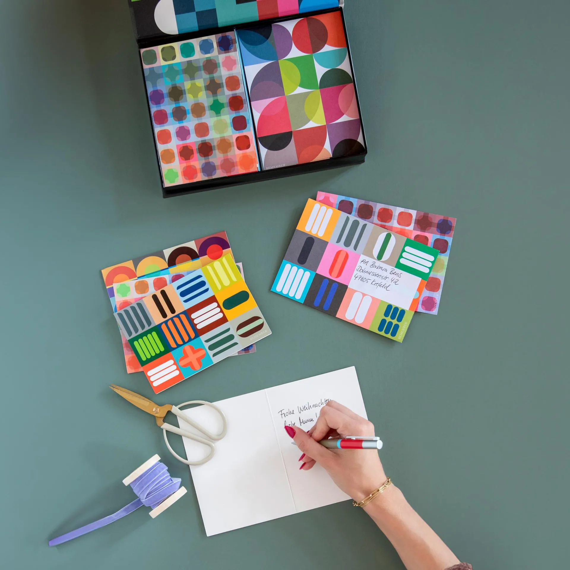 Ein lieber Gruß zum Geburtstag, zur Hochzeit, zum Einzug oder einfach so – es gibt zahlreiche Anlässe, ein paar nette Worte an jemanden zu richten. Mit dem Schreibset REMEMBER hat man dafür immer eine schön designte Karte zur Hand.