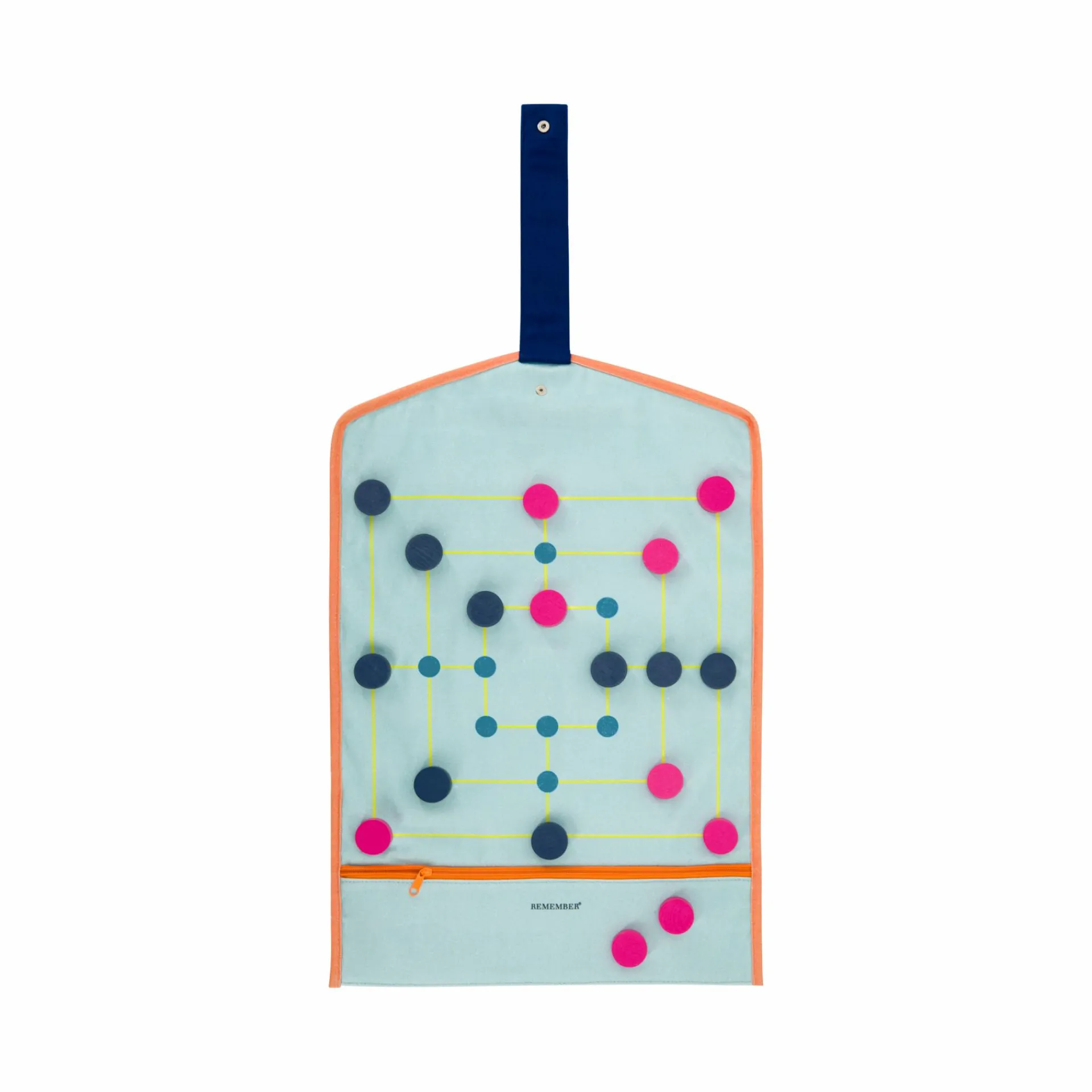 Lust auf ein Spielchen unterwegs? Das textile Mühle-/4 in einer Reihe-Spiel aus Baumwolle ist ideal für lange Autofahrten, den Park oder Strand. Zum Transport wird das Spiel einfach zusammengerollt und mit einem Druckknopf verschlossen. Die farbenfrohen Spielsteine sind in einer integrierten Tasche untergebracht.