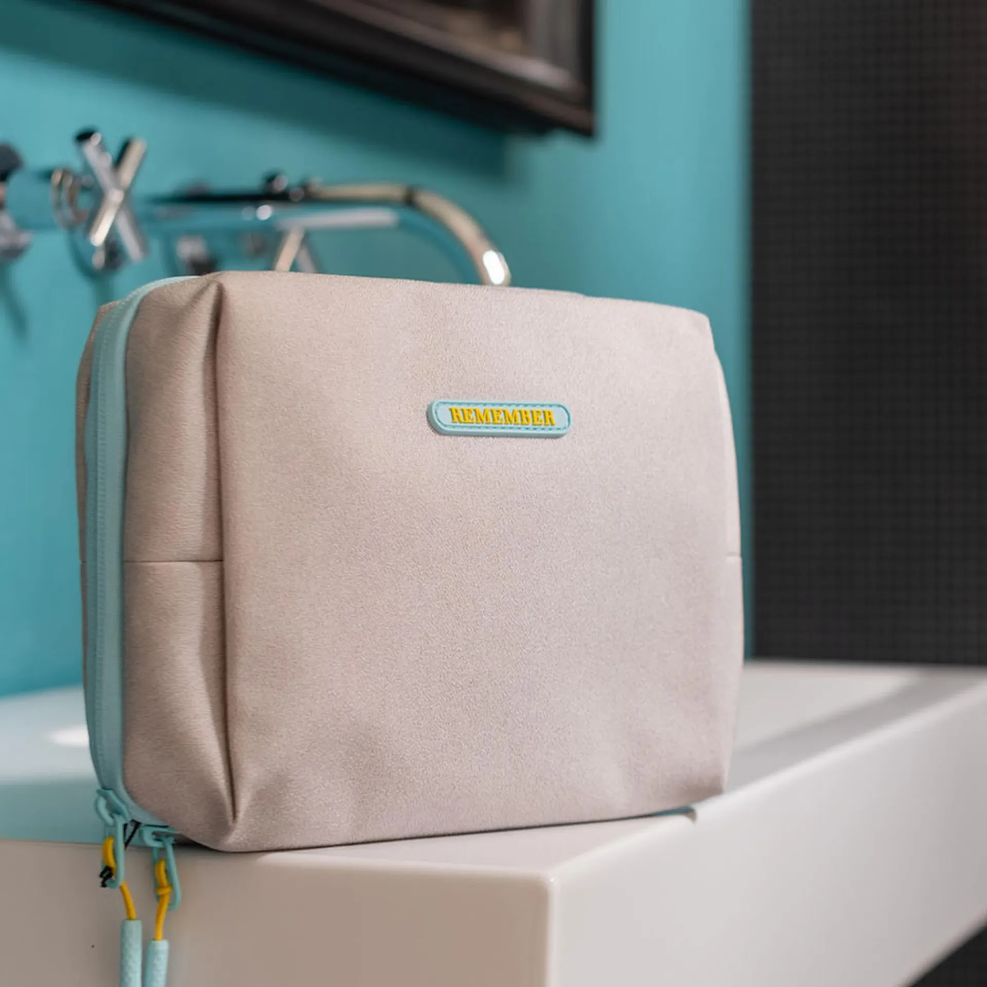 Die Kulturtaschen sind Teil der REMEMBER®-Badserie und passen zu den Badteppichen, den Handtüchern und dem Waschlappen-Set.