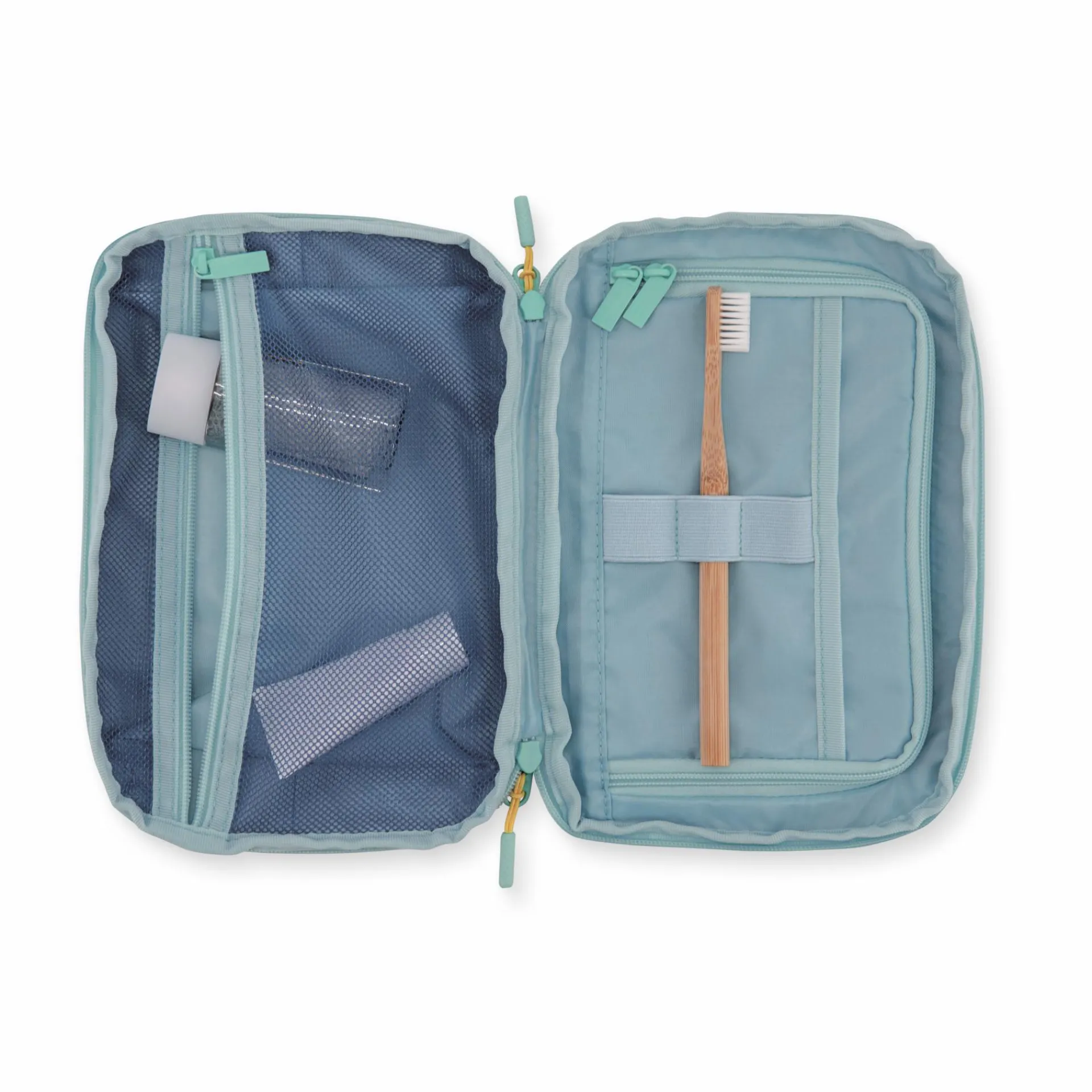 Pinsel, Tuben, Fläschchen, Blister – wer viele, kleine Kosmetik- und Hygieneartikel übersichtlich verstauen möchte, ist bei dieser kompakten Kulturtasche genau richtig. Praktische Steckfächer, Gummihalterungen und zwei Reißverschlusstaschen bringen Ordnung in die Beautyprodukte und die Suche nach Pinzette und Zahnseide gehört ein für allemal der Vergangenheit an. Ideal für Zuhause und für unterwegs.