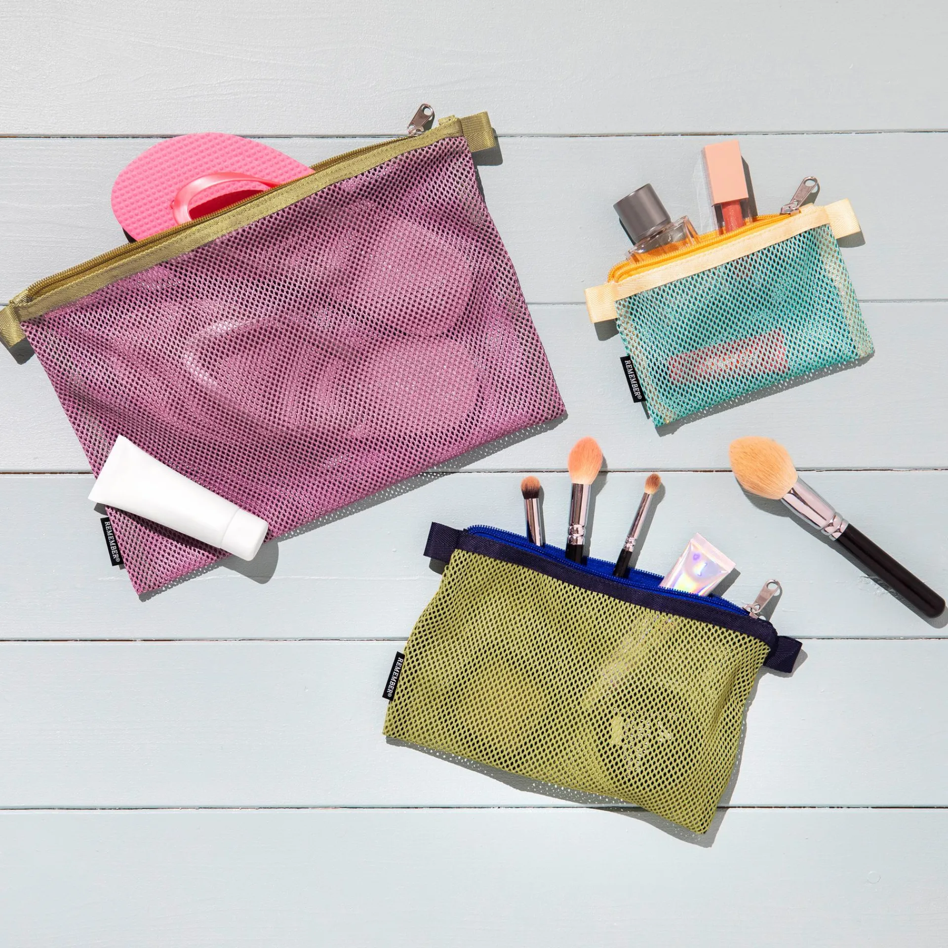 Als Kosmetiktäschchen für Bad und Büro oder Pouch für Schlüssel, Kleingeld & Co. – die leichten, farbigen Netztaschen sind hübsche Ordnungshelfer in allen Lebenslagen.