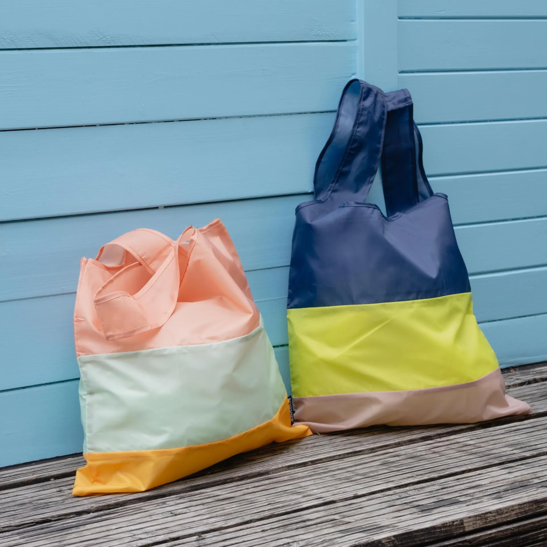 Freude an Farbe in einer funktionalen Einkaufstasche manifestiert. Und wird die Tasche nicht gebraucht, lässt sie sich klein zusammenfalten und in der Innentasche verstauen.