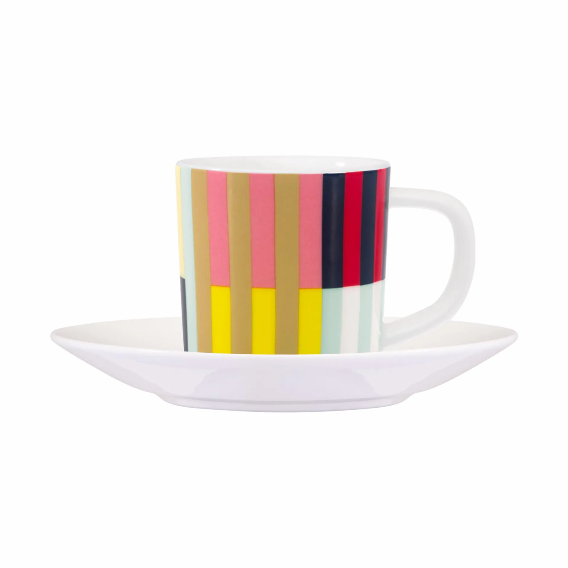 Für den kleinen Kick nach dem Essen oder zwischendurch: farbenfrohe Espressotassen. Schönes Detail: Der Unterteller nimmt das Muster farblich auf.