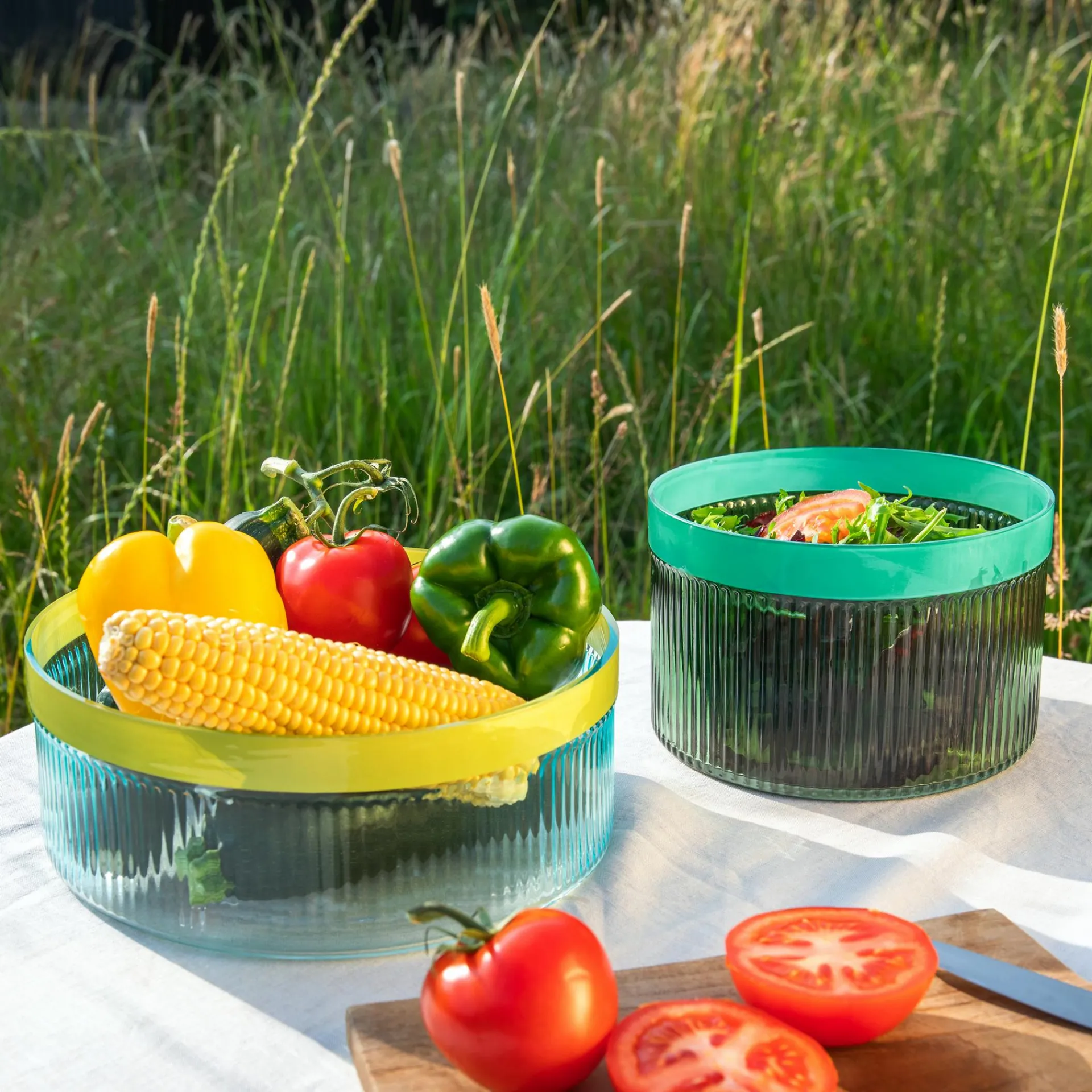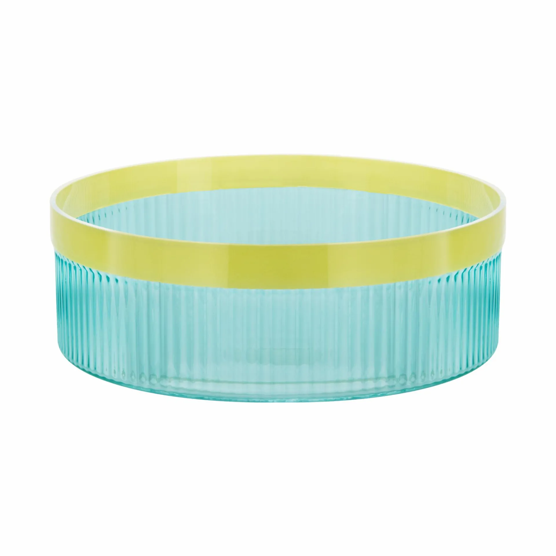 Ob auf dem Sideboard, dem Esstisch oder im Wohnzimmer – die Glasschale Groove ist ein echtes Highlight. Das gefärbte, geriffelte Glas spielt mit dem Licht und sorgt so für faszinierende Effekte. Mit ihrer besonderen Struktur und der farbigen Umrandung bringt die Schale Pflanzenarrangements, Obst oder den Salat zum Abendessen perfekt zur Geltung und verleiht dem Zuhause eine entspannte Eleganz und stilvolle Note.