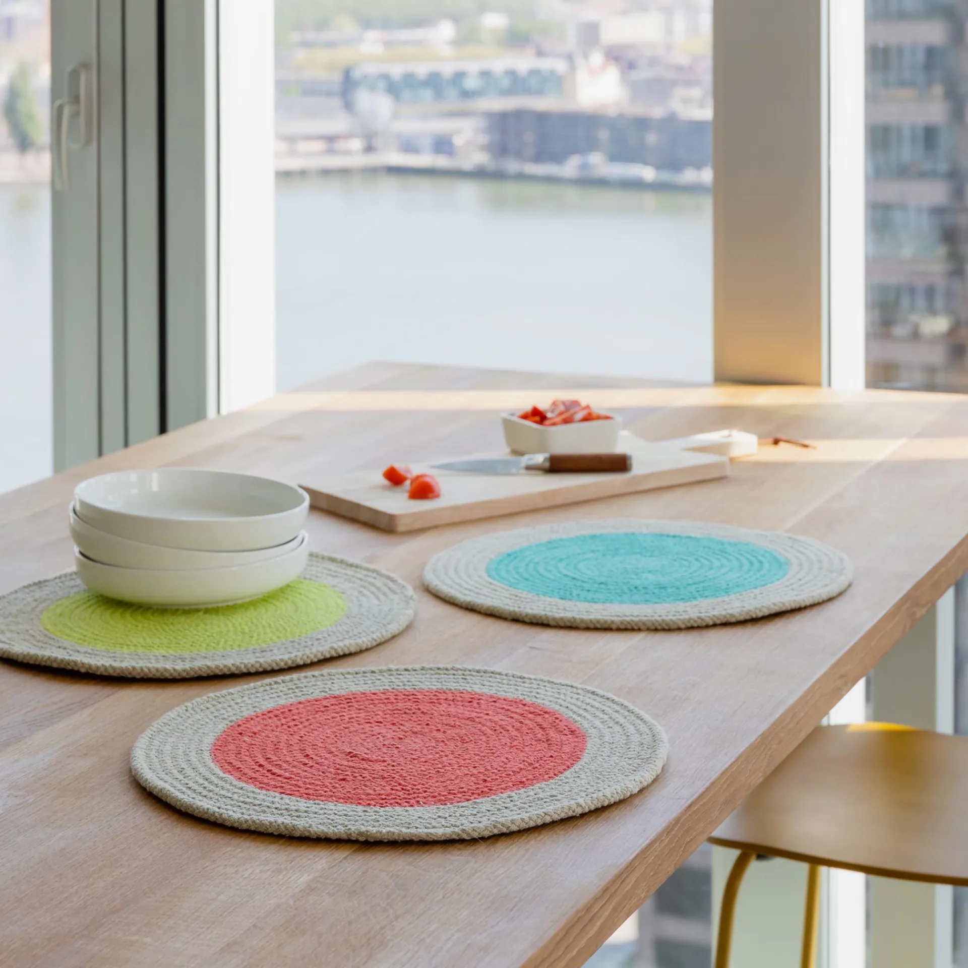 Runde Tischsets, die Farbe auf den Tisch bringen. Mit den Sets aus Baumwollseil wird der gedeckte Tisch noch einladender und die Tischoberfläche ist vor Flecken geschützt. Passende Ergänzung: die auf die Sets farblich abgestimmten Baumwoll-Servietten, die ebenfalls im 2er-Set erhältlich sind.