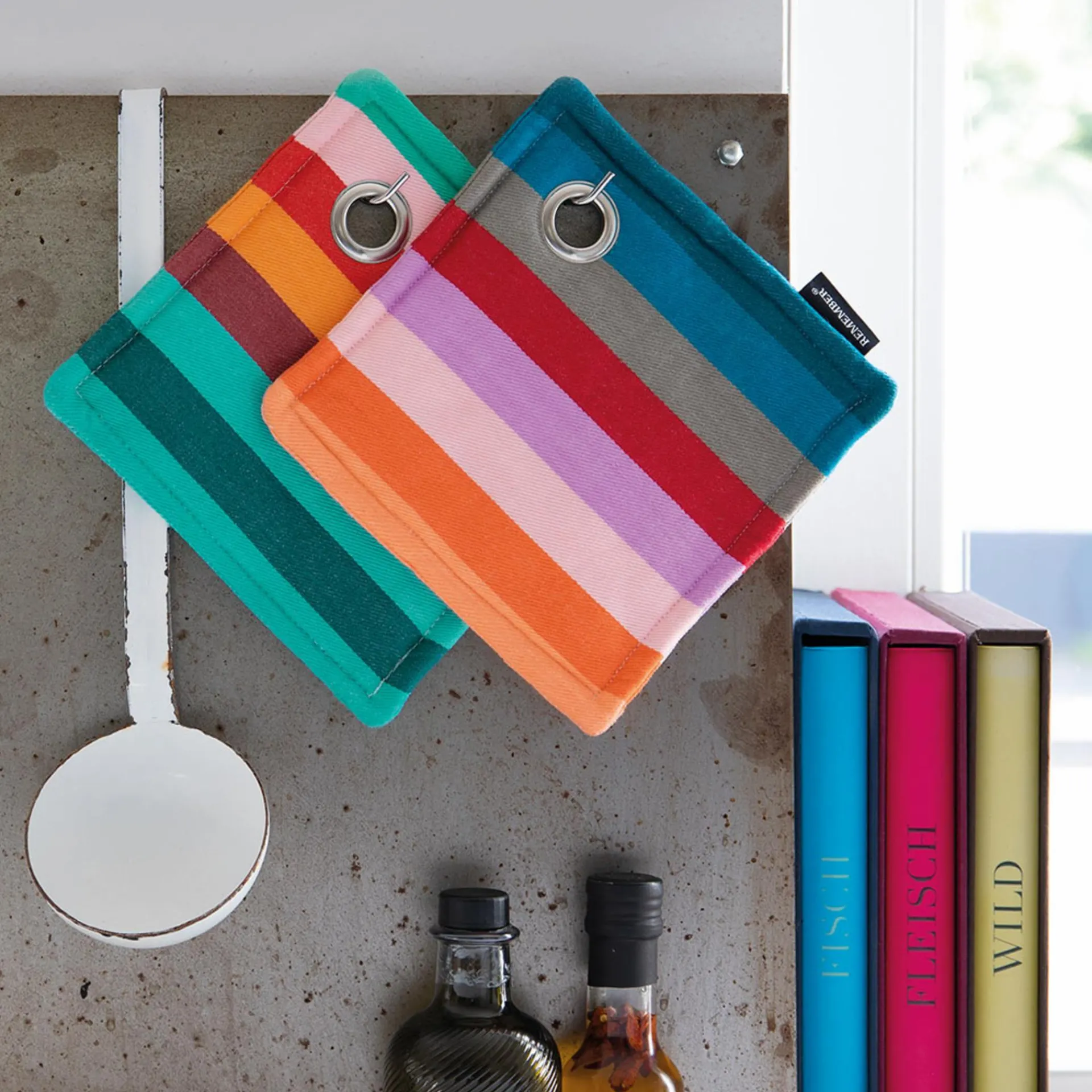 Dekorativer Hitzeschutz: wattierte Topflappen im 2er-Set. In zwei unterschiedlichen aufeinander abgestimmten Designs.