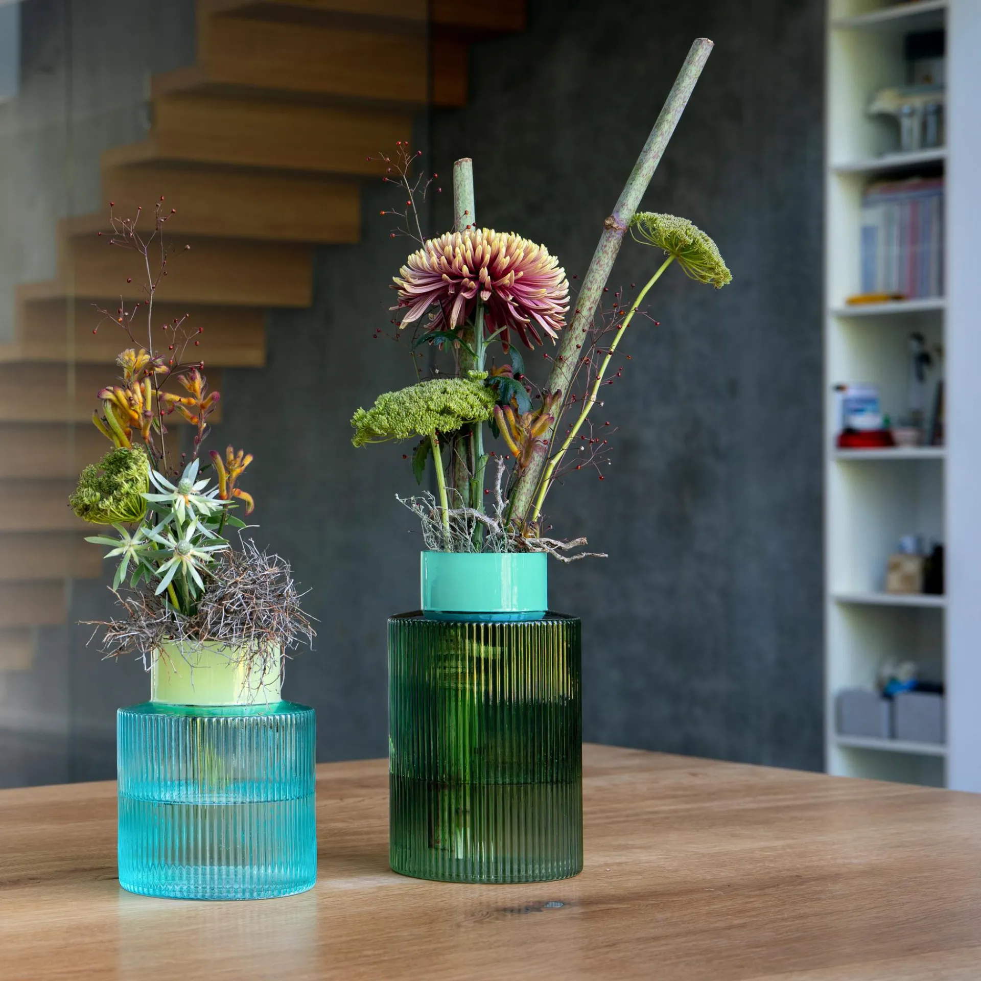 Maße: Groove L green: H 23,8 cm, Ø 14,5 cm, Vasenöffnung: Ø 9,3 cm