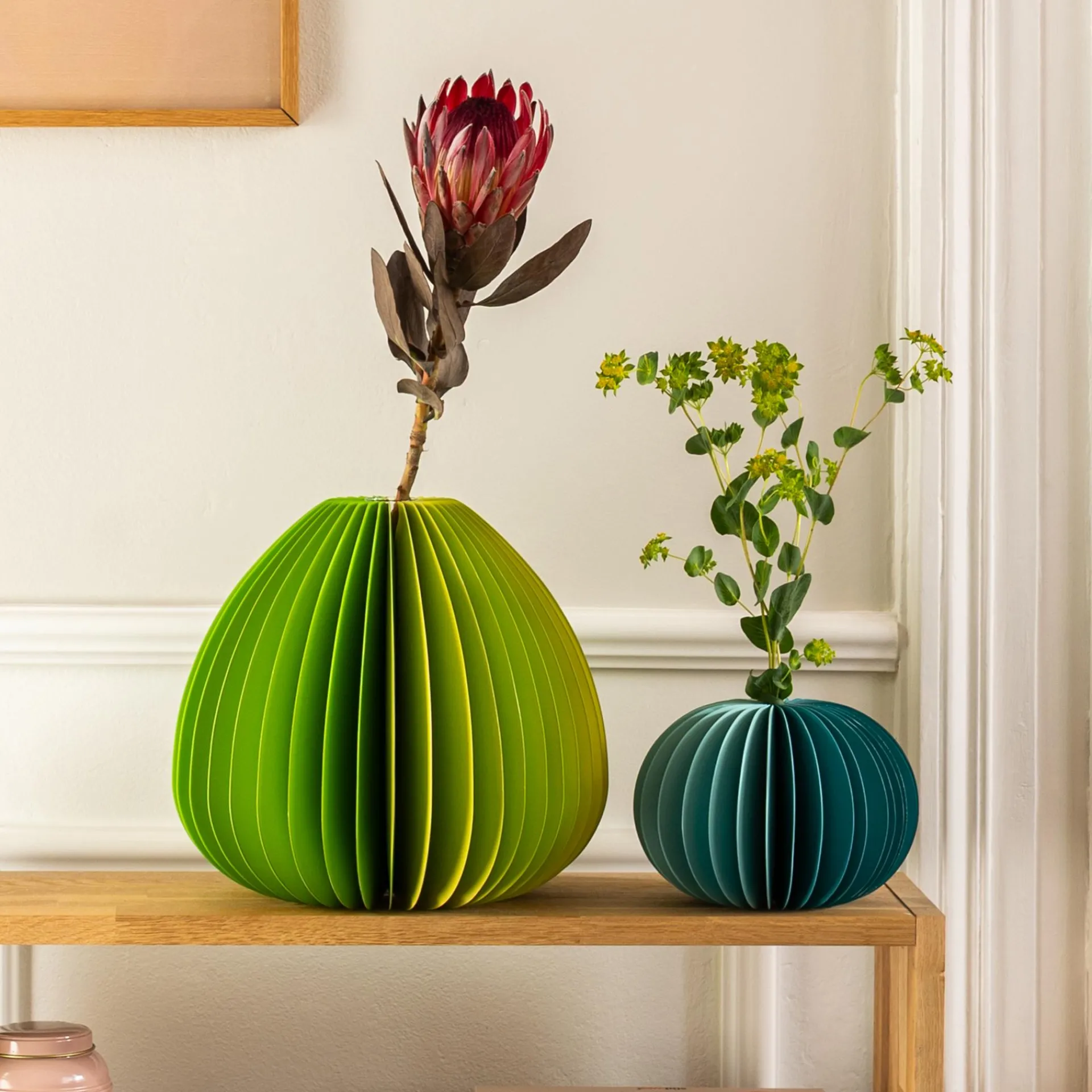 Einfach auffalten, Blümchen rein – fertig ist ein echtes Deko-Highlight. Die zweifarbige Vase mit Glaszylinder zeichnet sich durch ein tolles Farbspiel aus und lässt sich dank des Magnetverschlusses ganz einfach auf- und zusammenfalten.